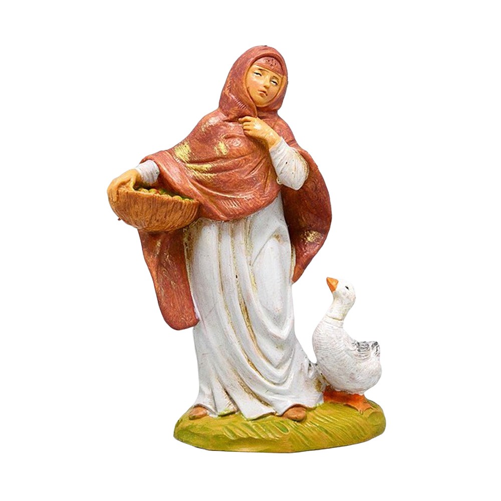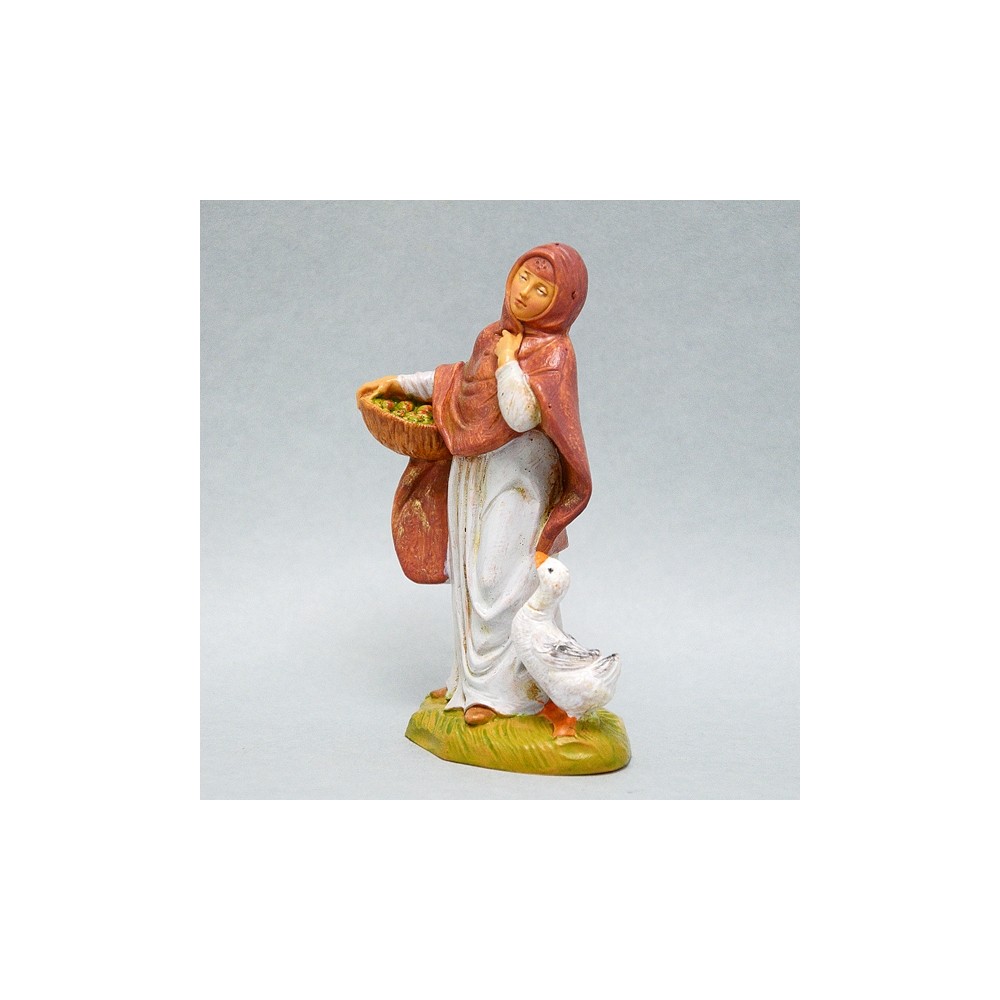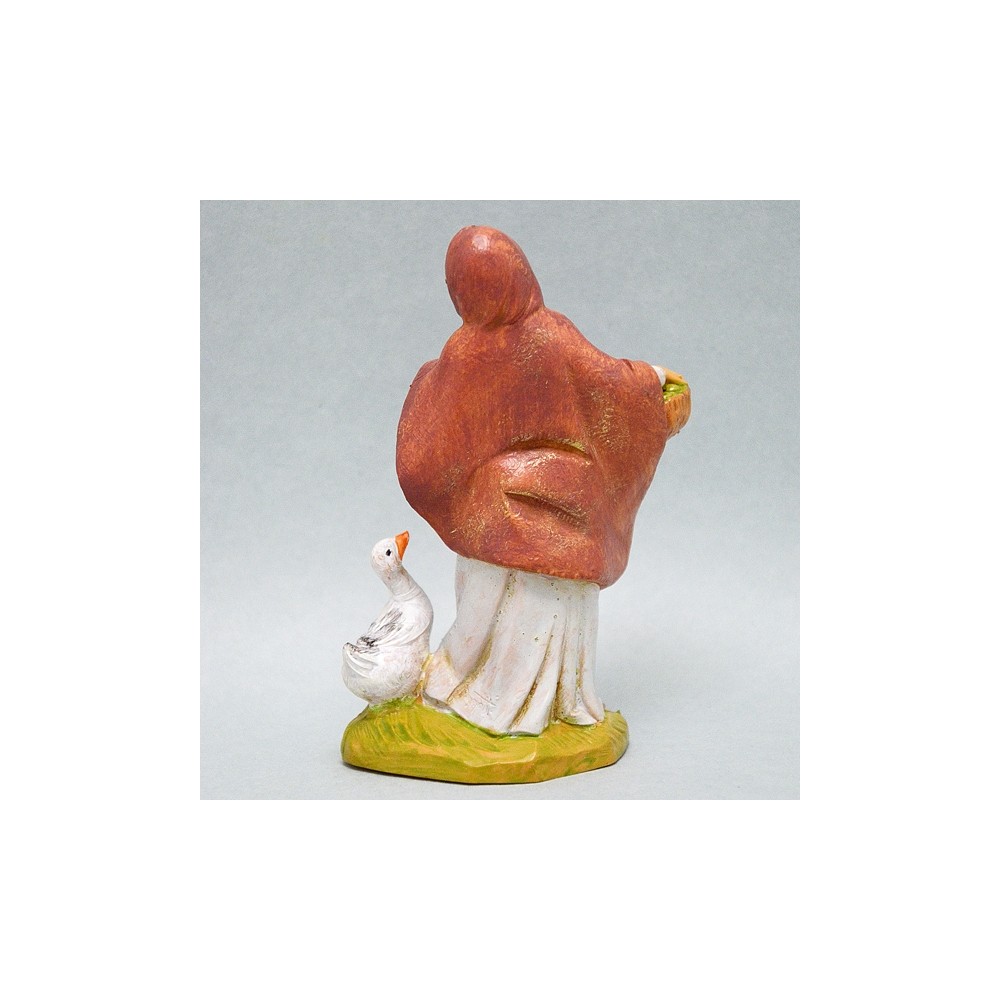 Ragazza con scialle rosso, cesto sotto il braccio e ochetta per il Presepe Fontanini da 12 cm.
