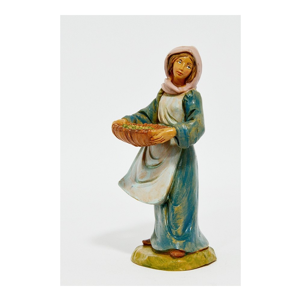 Pastorella con cesto tra le braccia per il Presepe Fontanini da 12 cm.