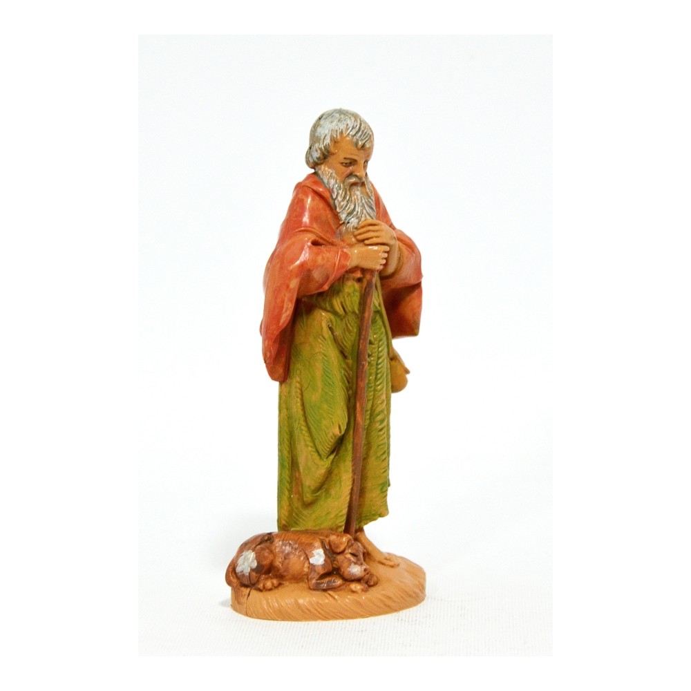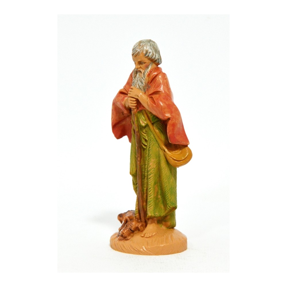 Statua del Pastore Anziano con Bastone e Cane per il Presepe Fontanini da 12 cm.