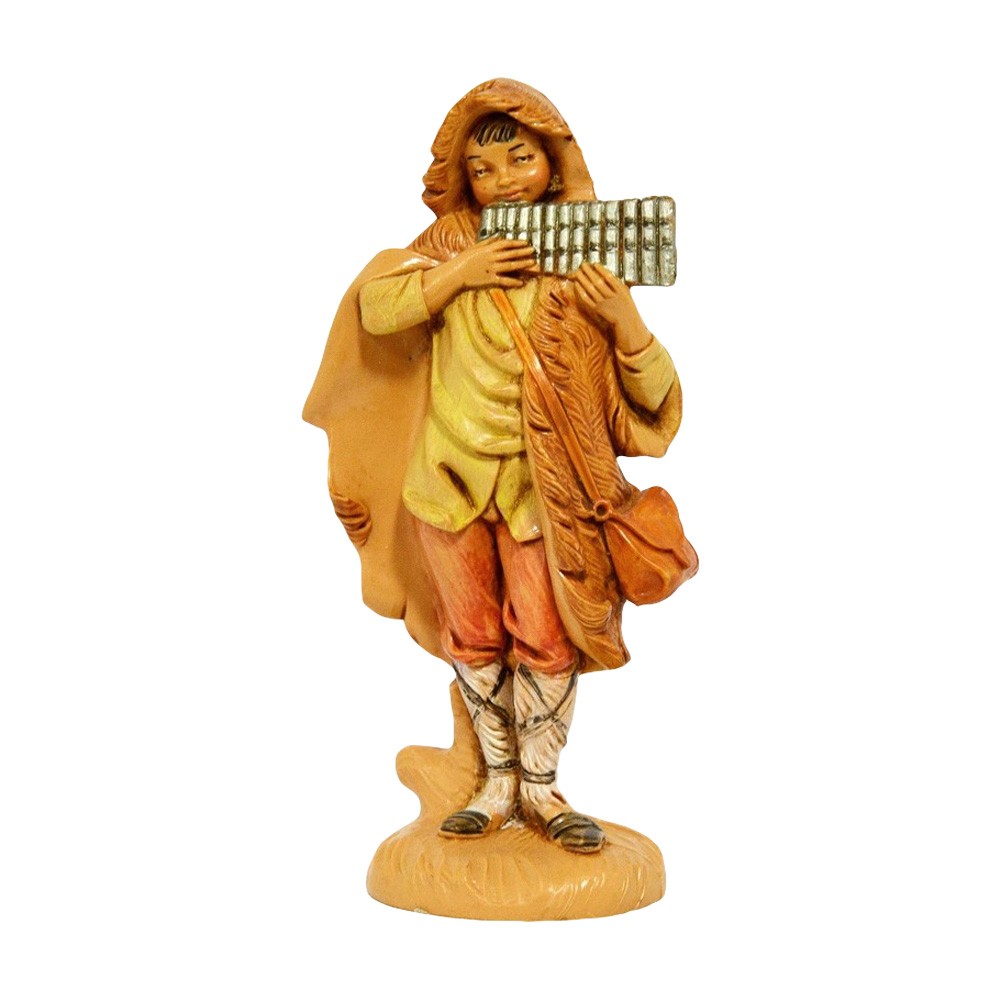 Statua del personaggio musicista Ragazzo con Flauto per il Presepe Fontanini da 12 cm.