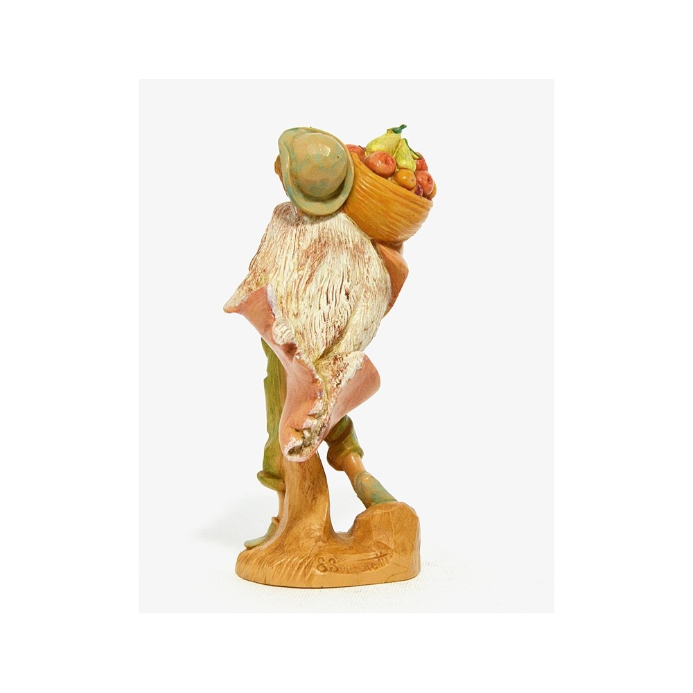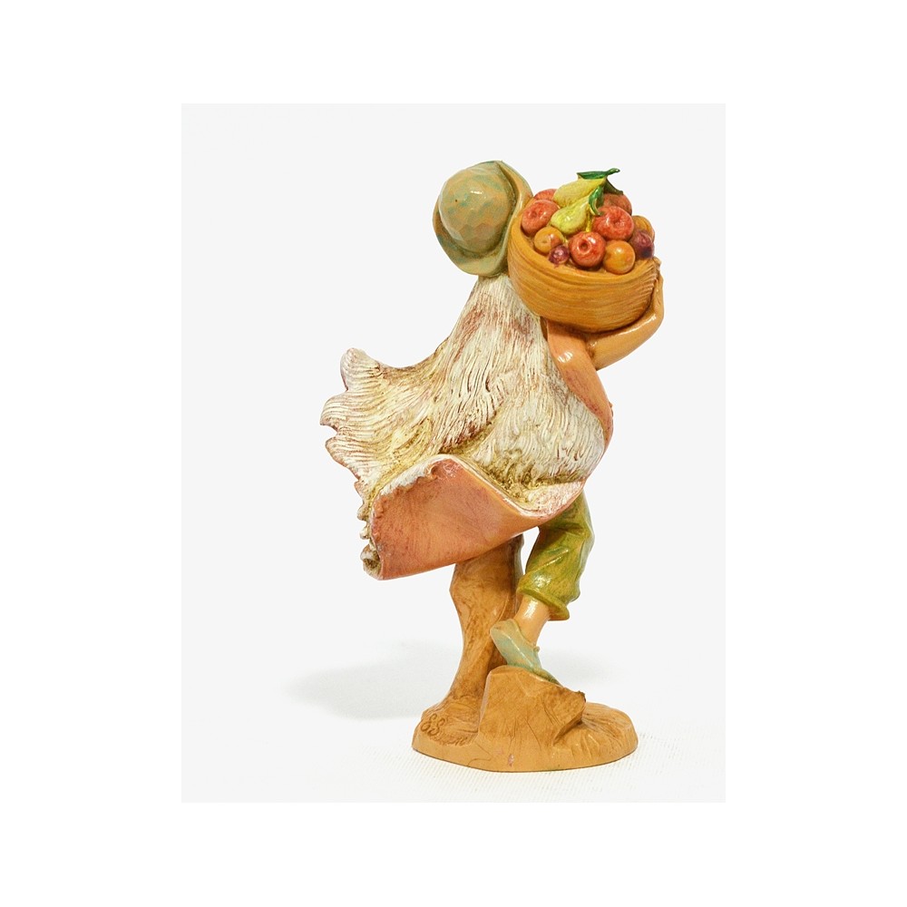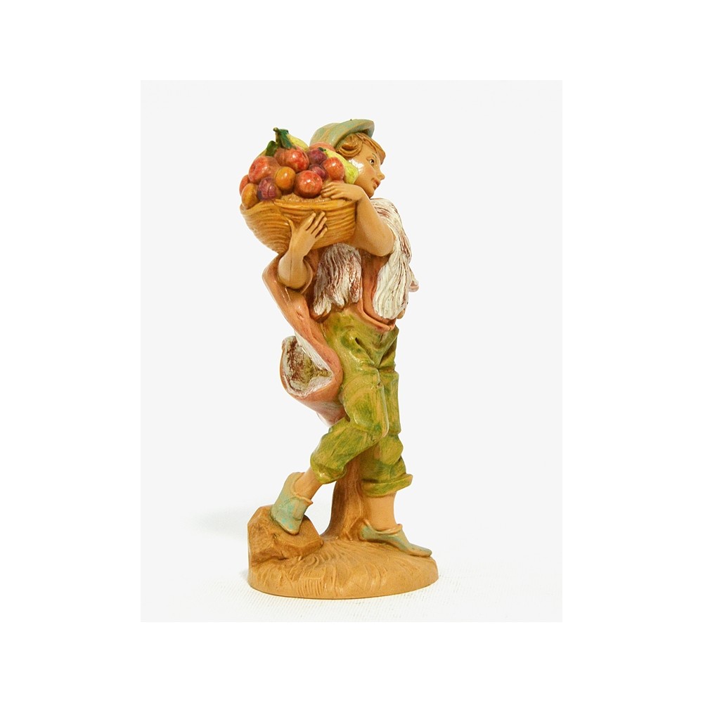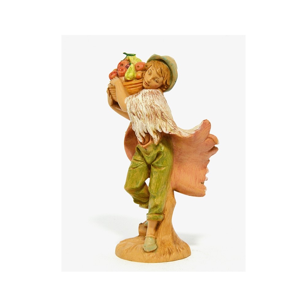 Ragazzo con mantello di lana e con Cesto di Frutta sulle spalle per il Presepe Fontanini da 12 cm.