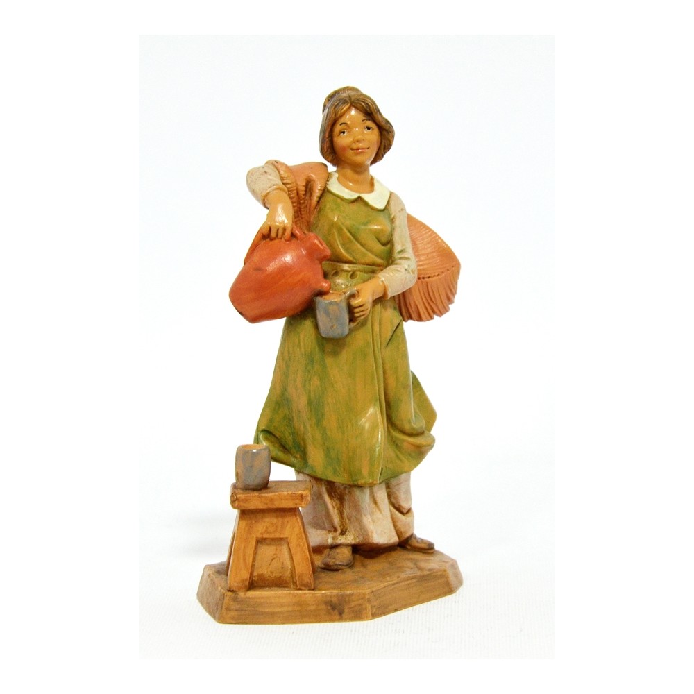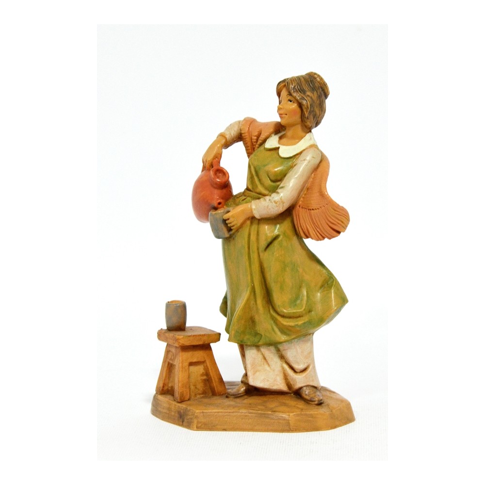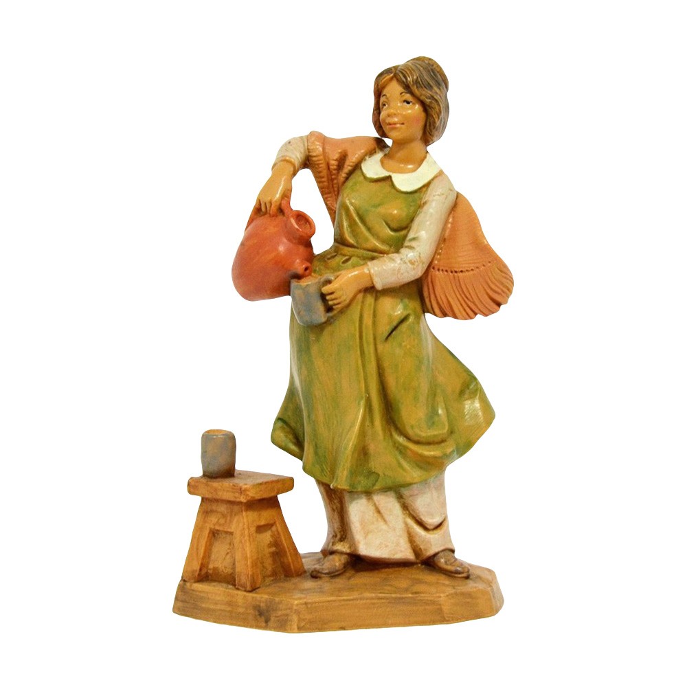 Statua del Personaggio Donna con Giara che versa nel Bicchiere per il Presepe Fontanini da 12 cm.