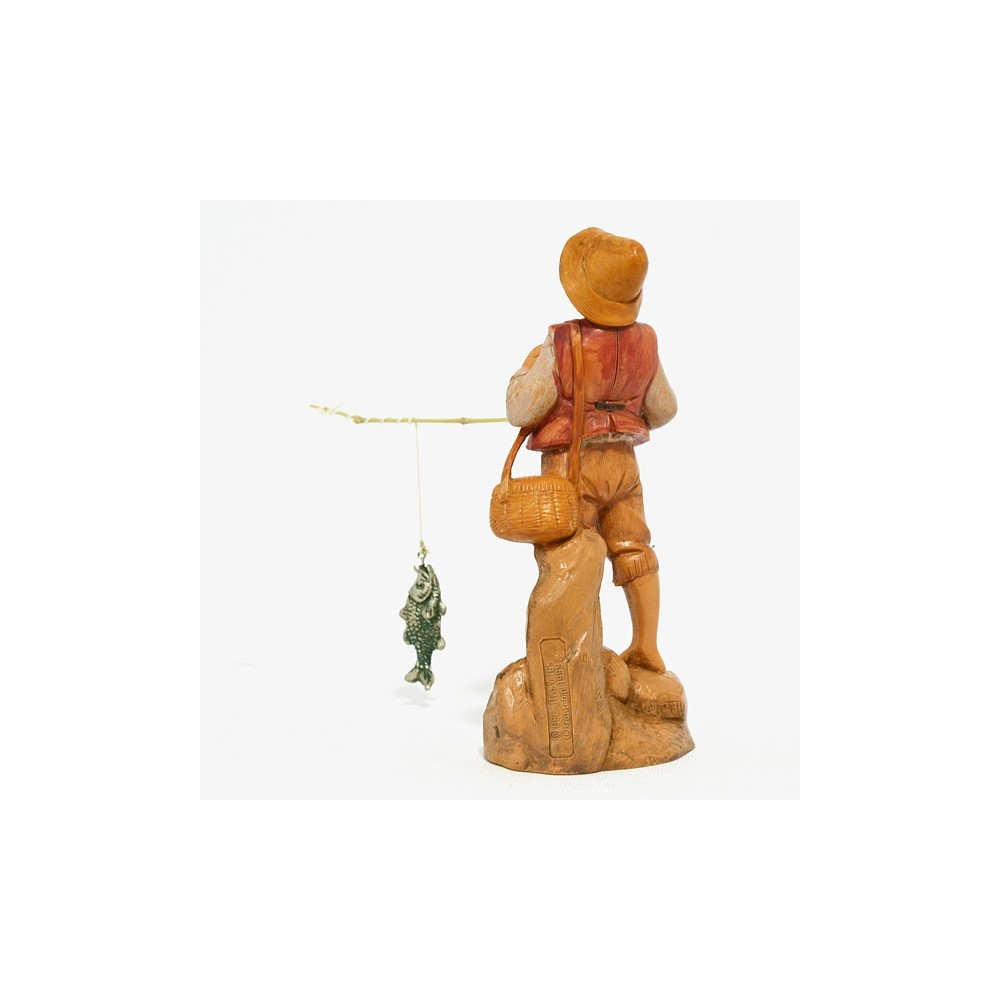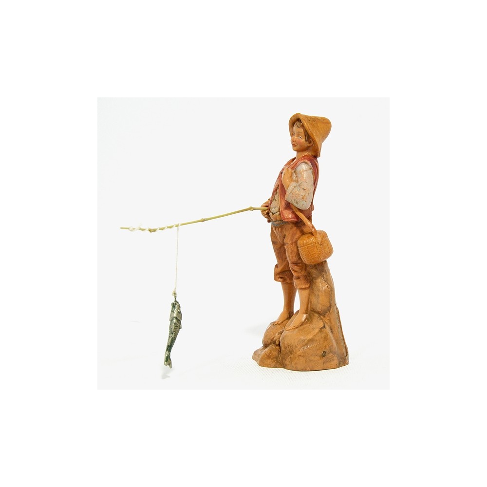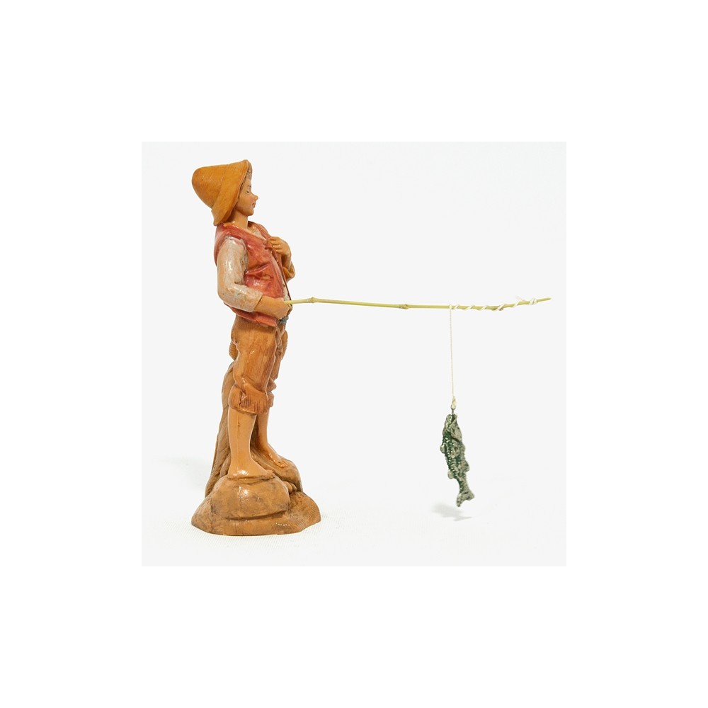Statua del Personaggio Pescatore con Canna da Pesca e Pesce per il Presepe Fontanini da 12 cm.