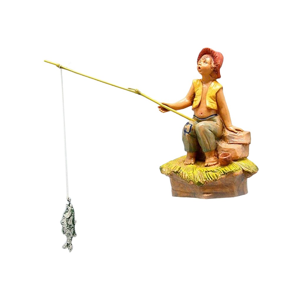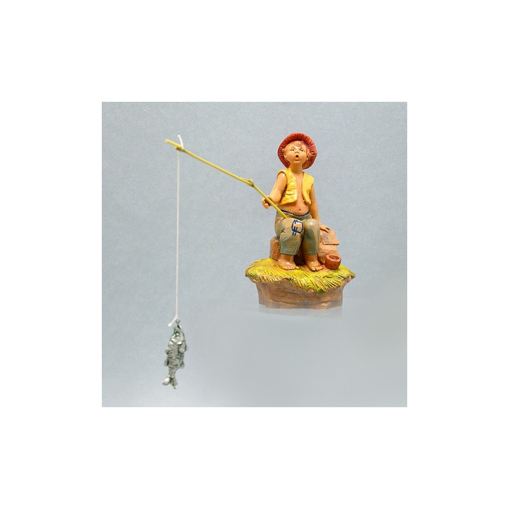 Statua del Personaggio Bambino seduto che Pesca con la canna per il Presepe Fontanini da 12 cm.