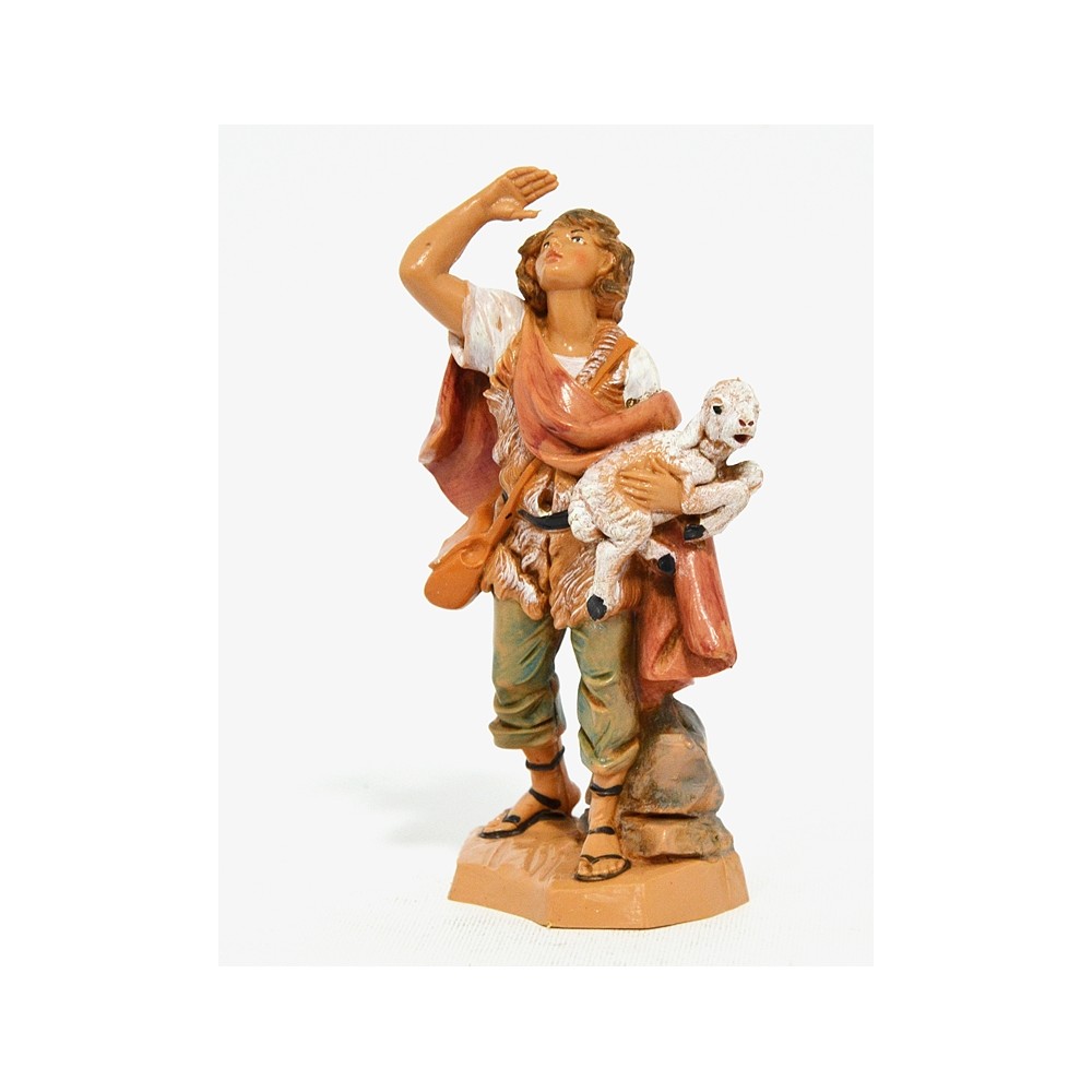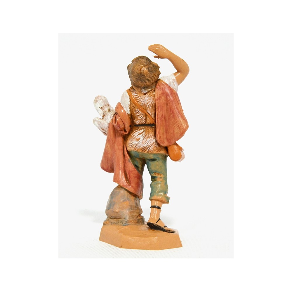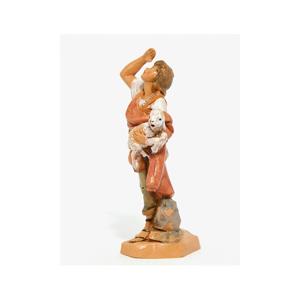 Ragazzo che guarda l'orizzonte con Pecorella in braccio per il Presepe Fontanini da 12 cm.