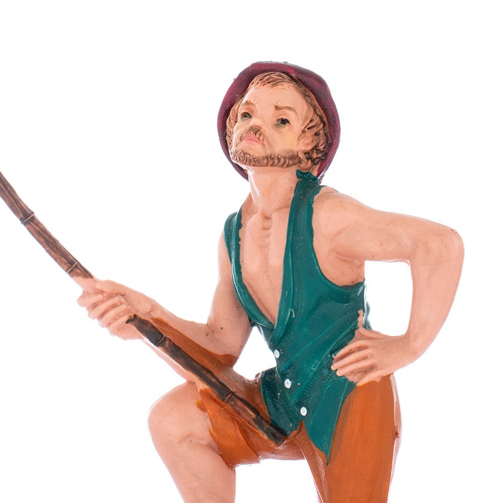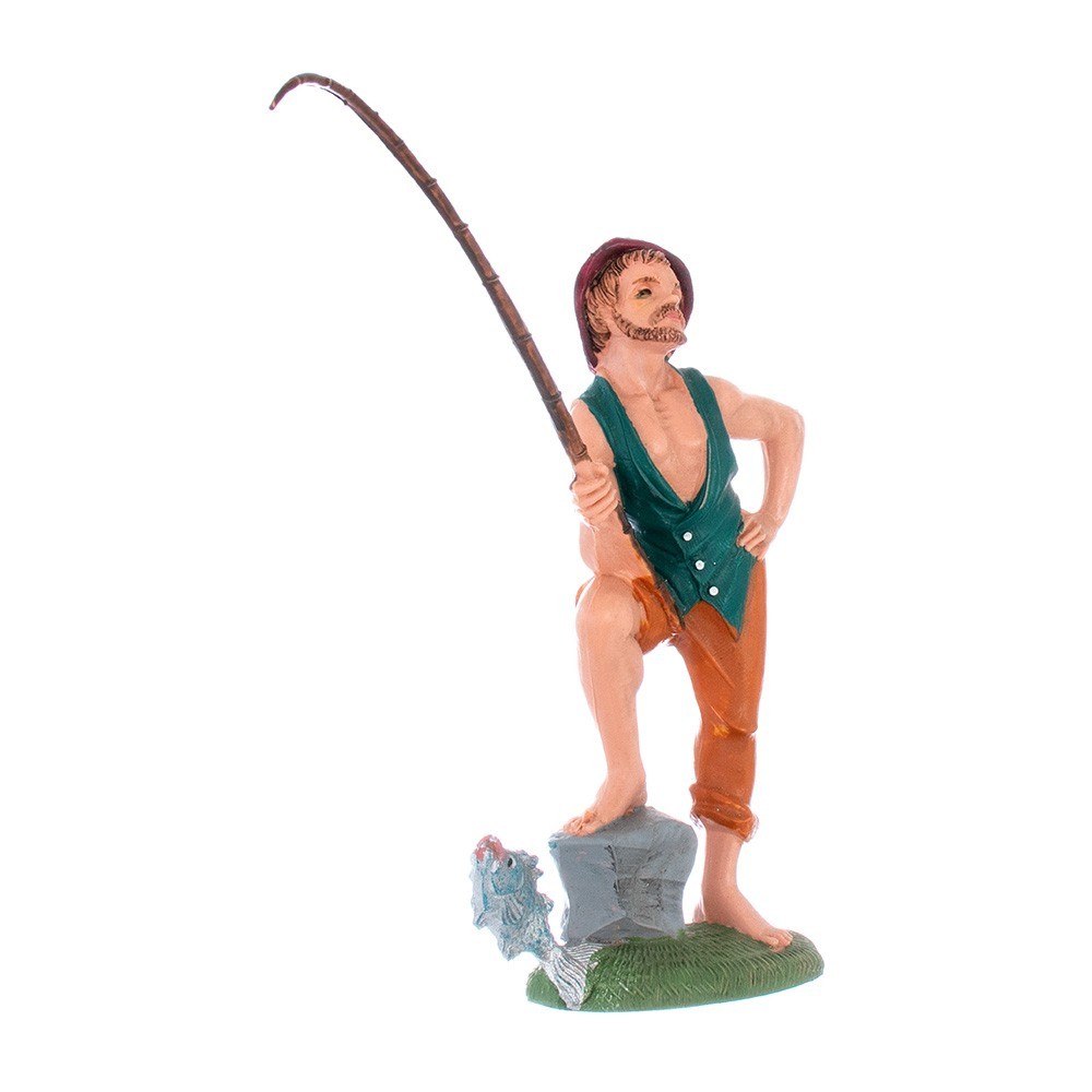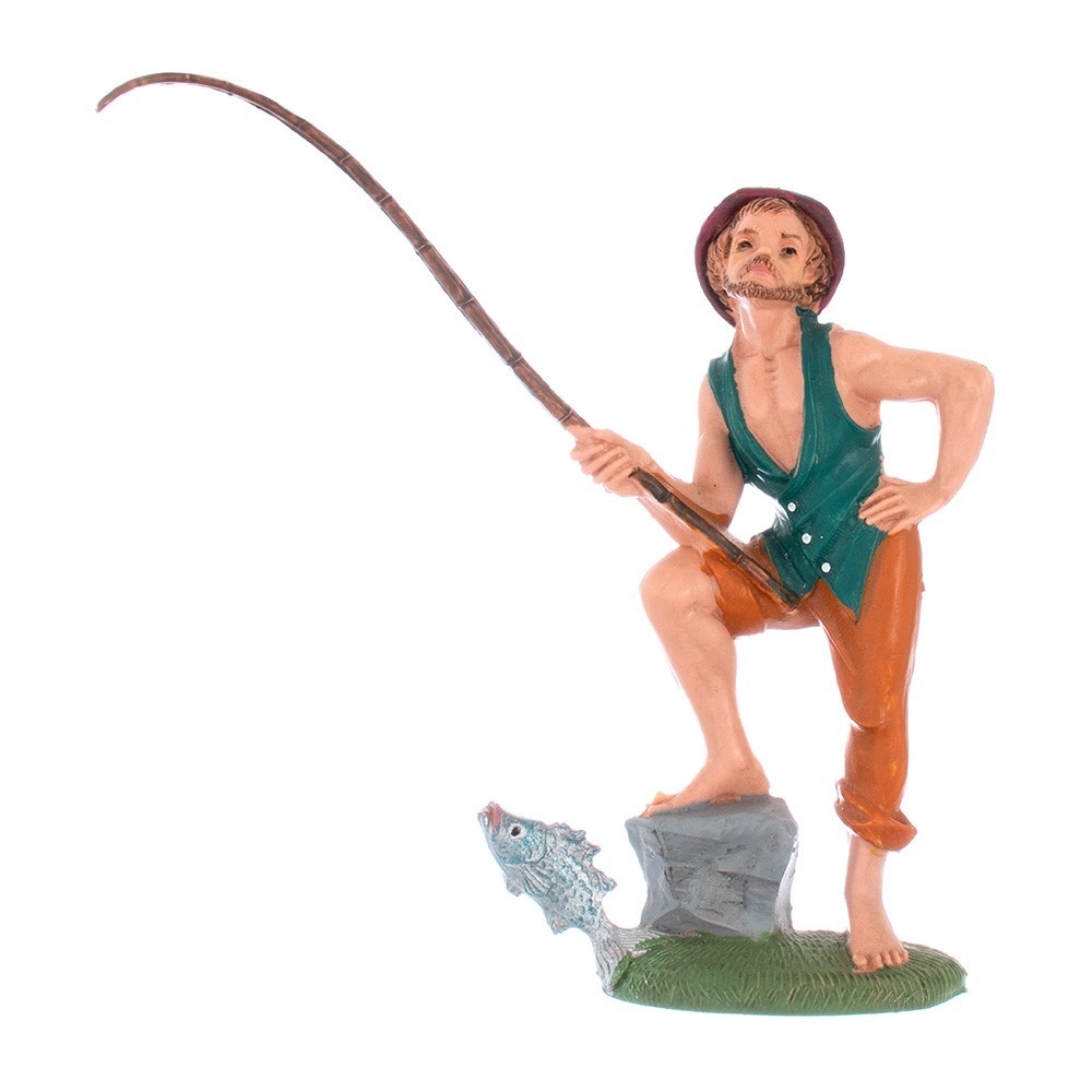 Pescatore con canna da pesca e pesce per il Presepe colorato Fontanini da 12 cm.