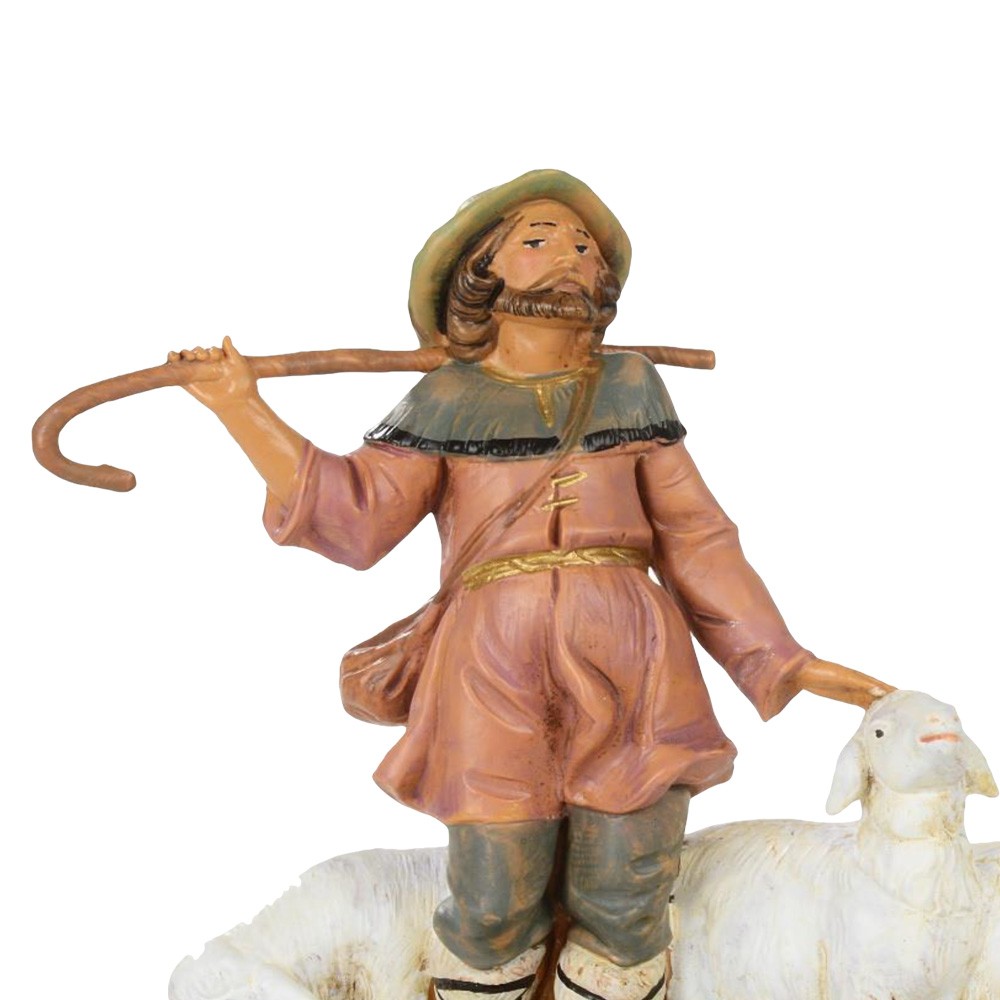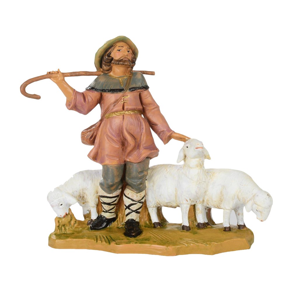 Pastore con gregge per il Presepe Fontanini da 12 cm. La statuetta è realizzata in PVC,materiale estremamente resistente alle rotture.