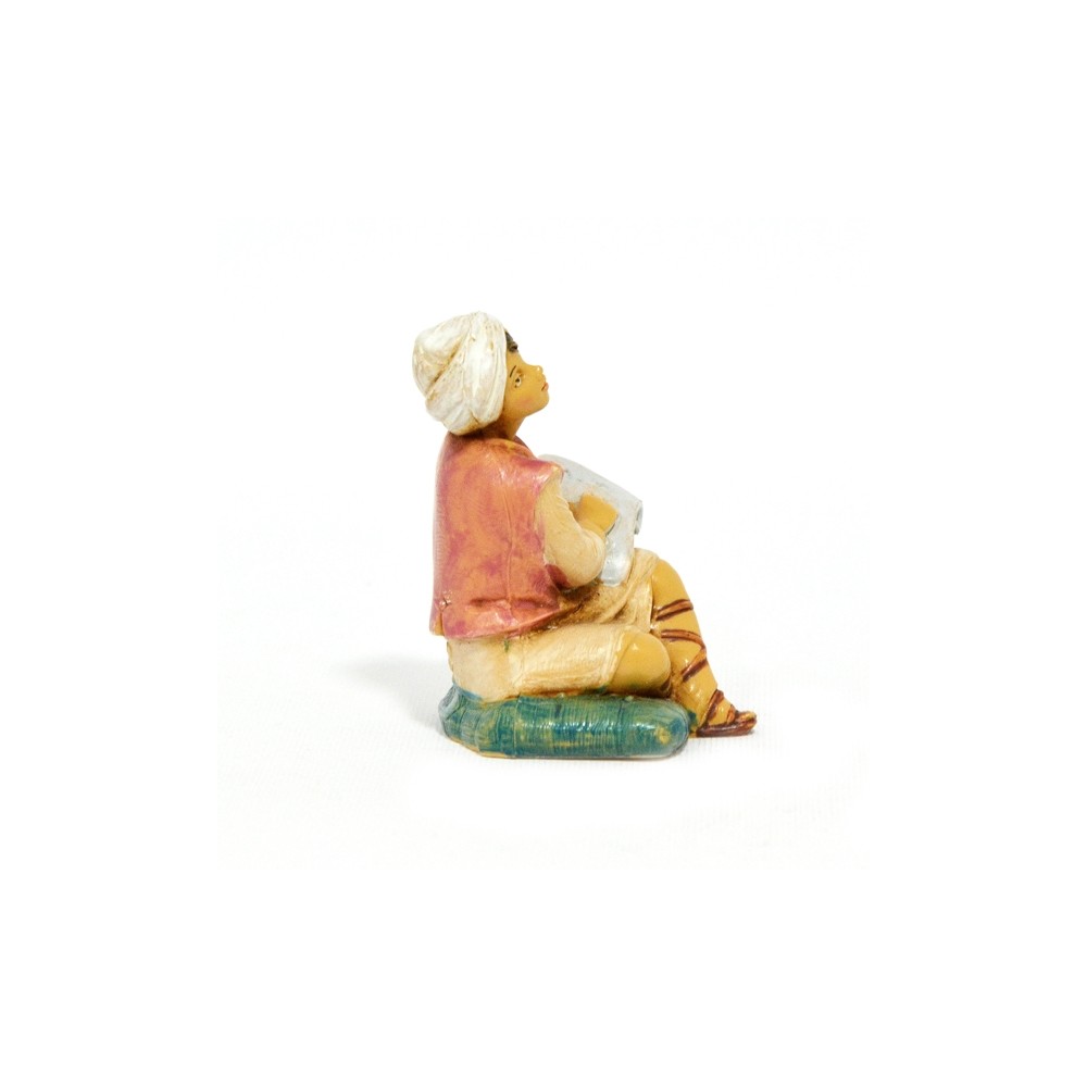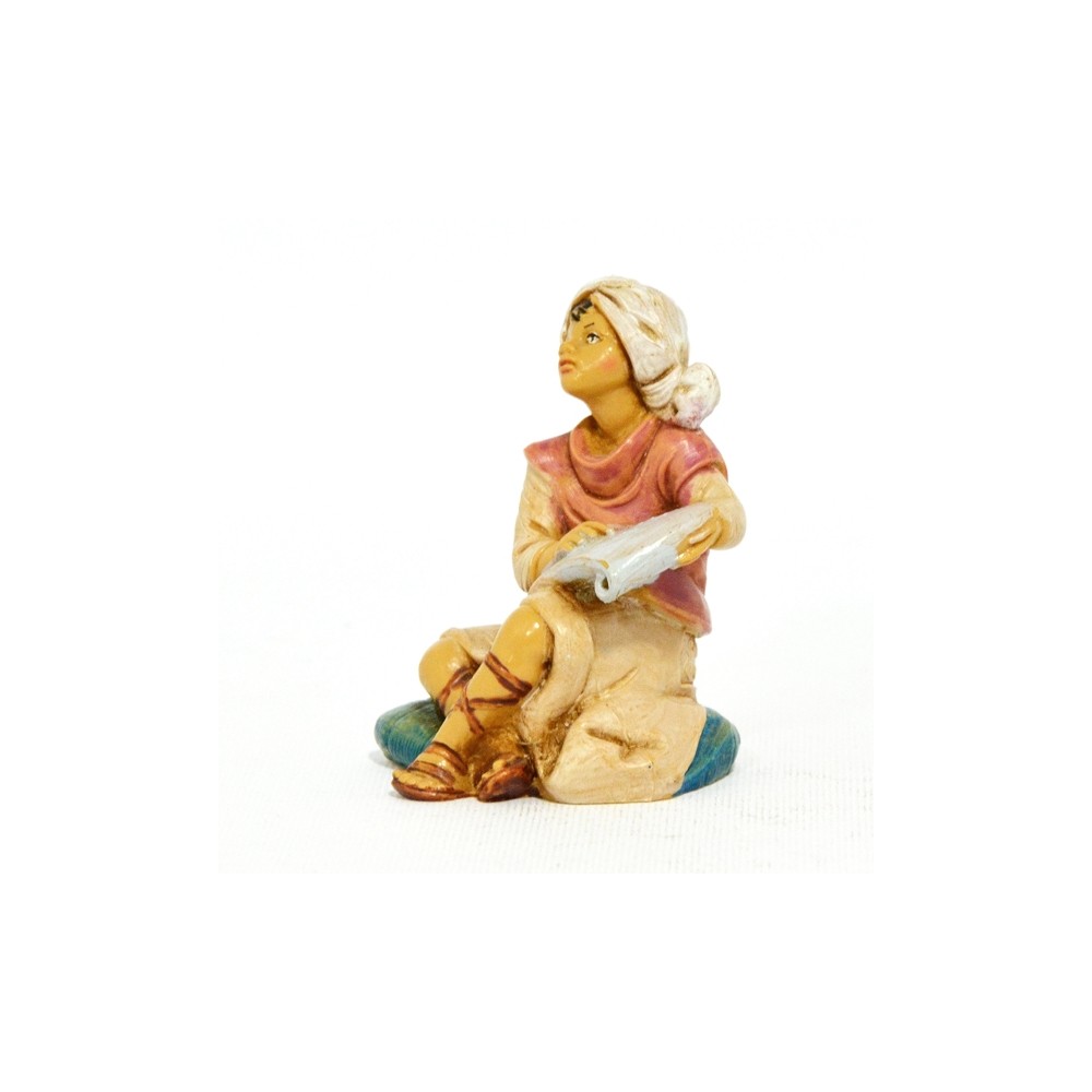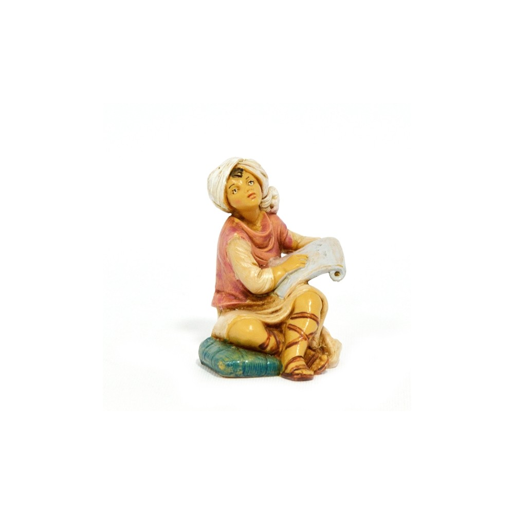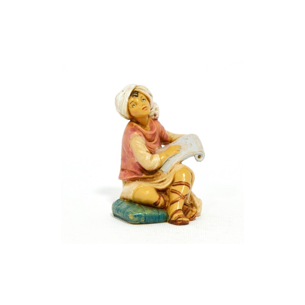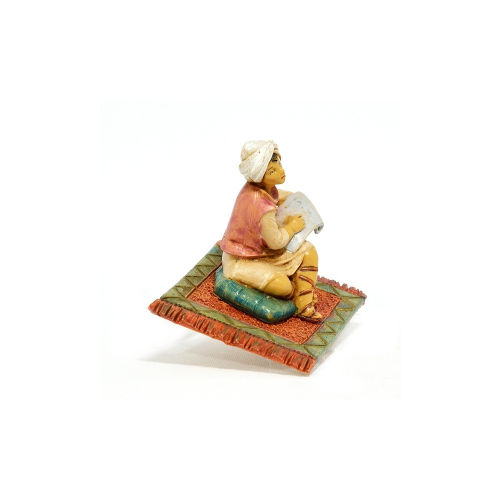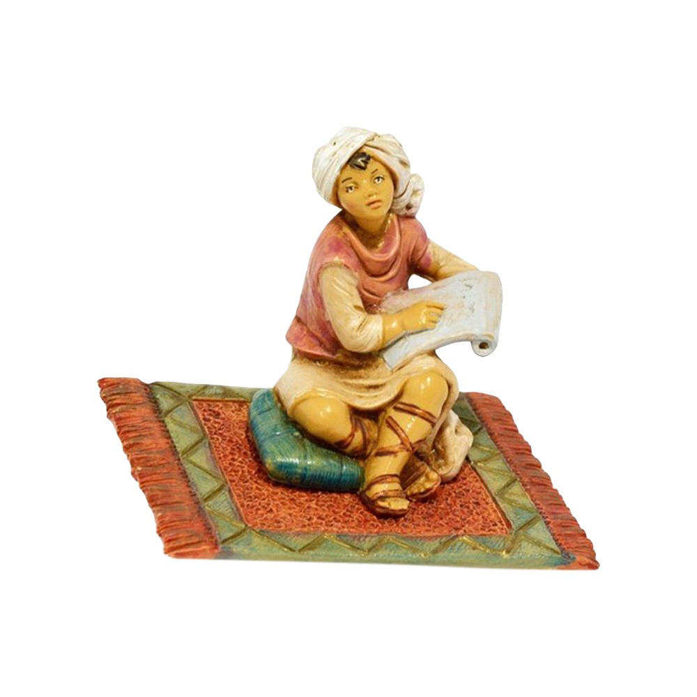 Statua del Personaggio Ragazzo che studia le Sacre Scritture sulla Pergamena Seduto su Tappeto per il Presepe Fontanini da 12 cm.