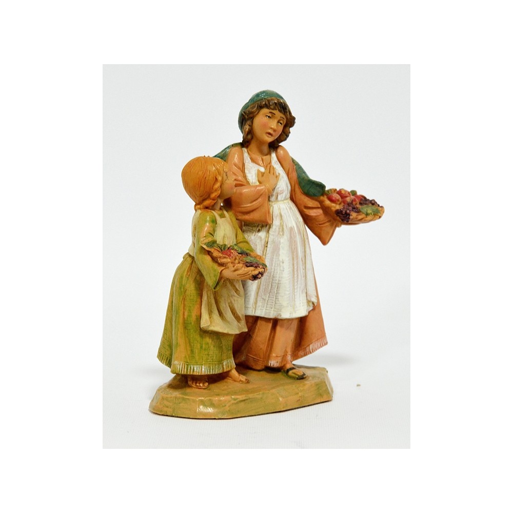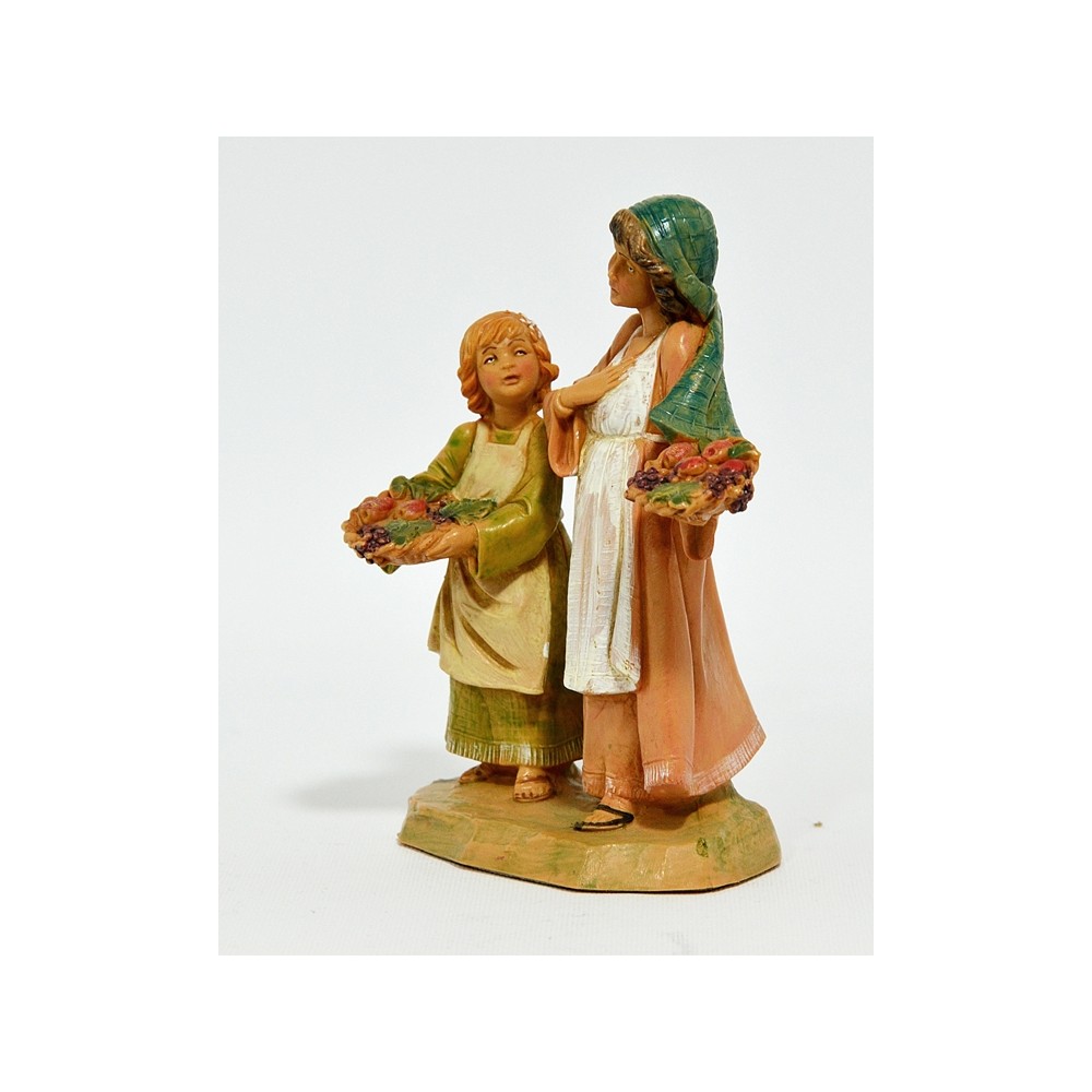 Statue dei personaggi Donna con Bambino "Ava e Lea" con Cesti di Fruttai in mano per il Presepe Fontanini da 12 cm.
