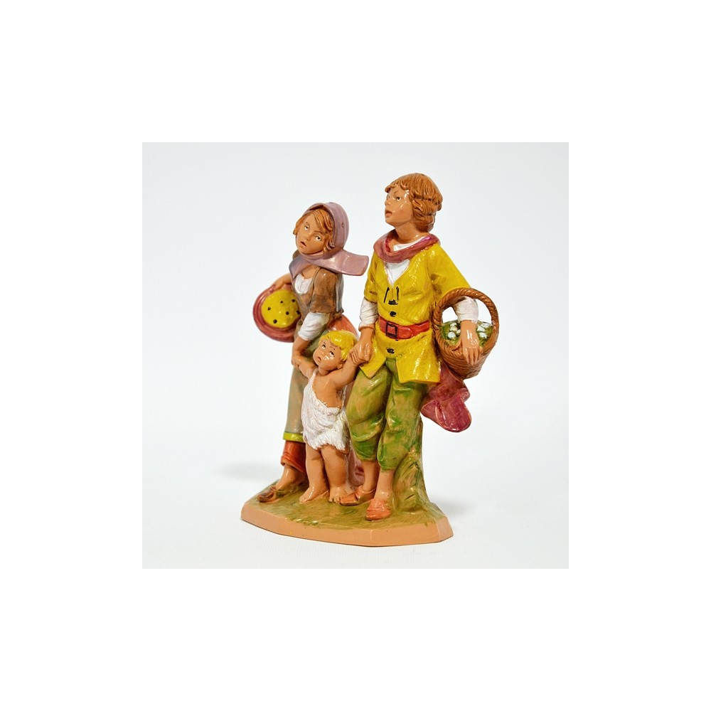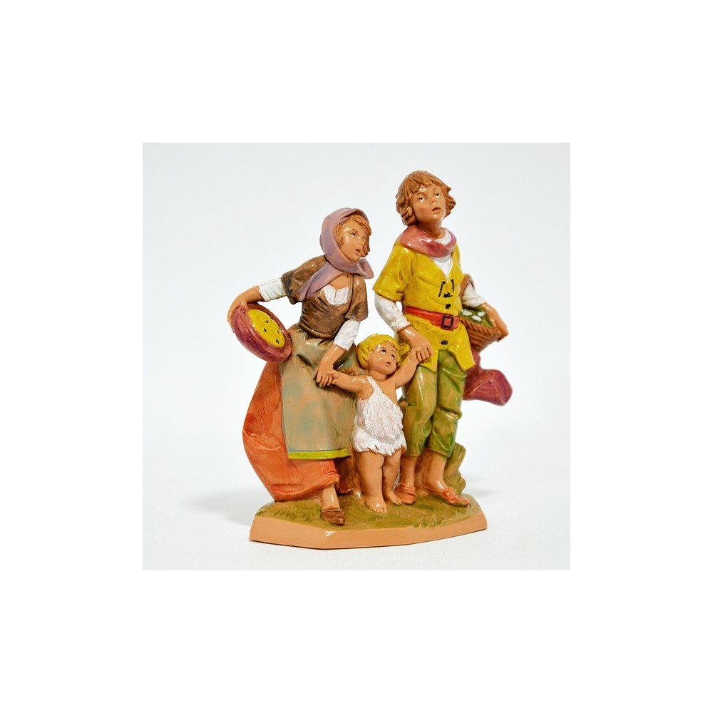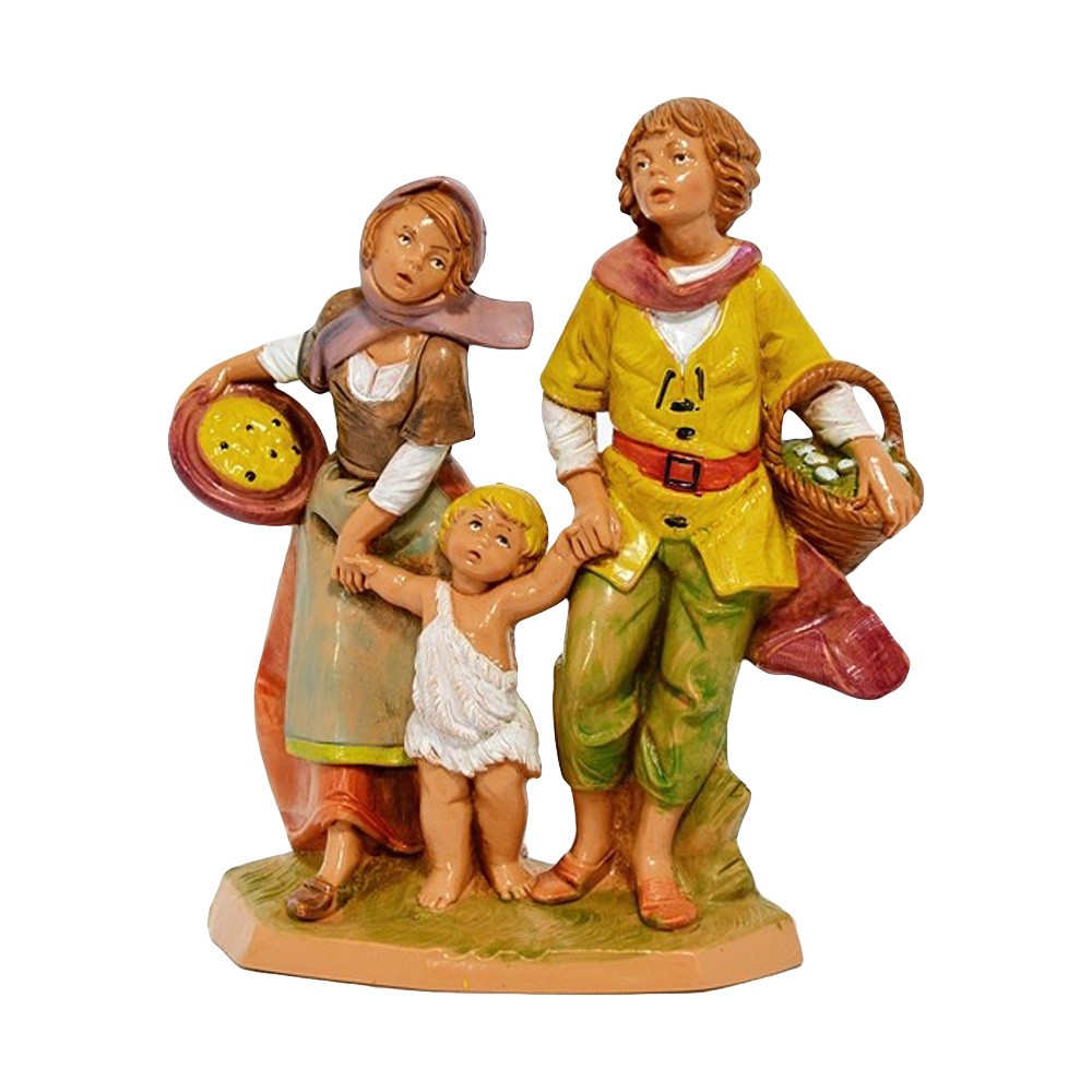 Statua dei Personaggi in Gruppo Famiglia con cesti di cibo e bambino per mano per il Presepe Fontanini da 12 cm.