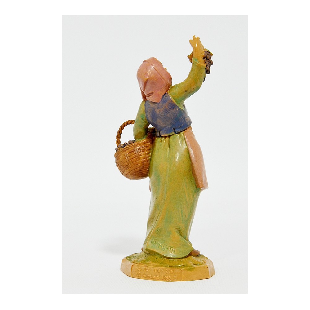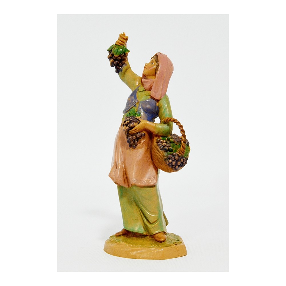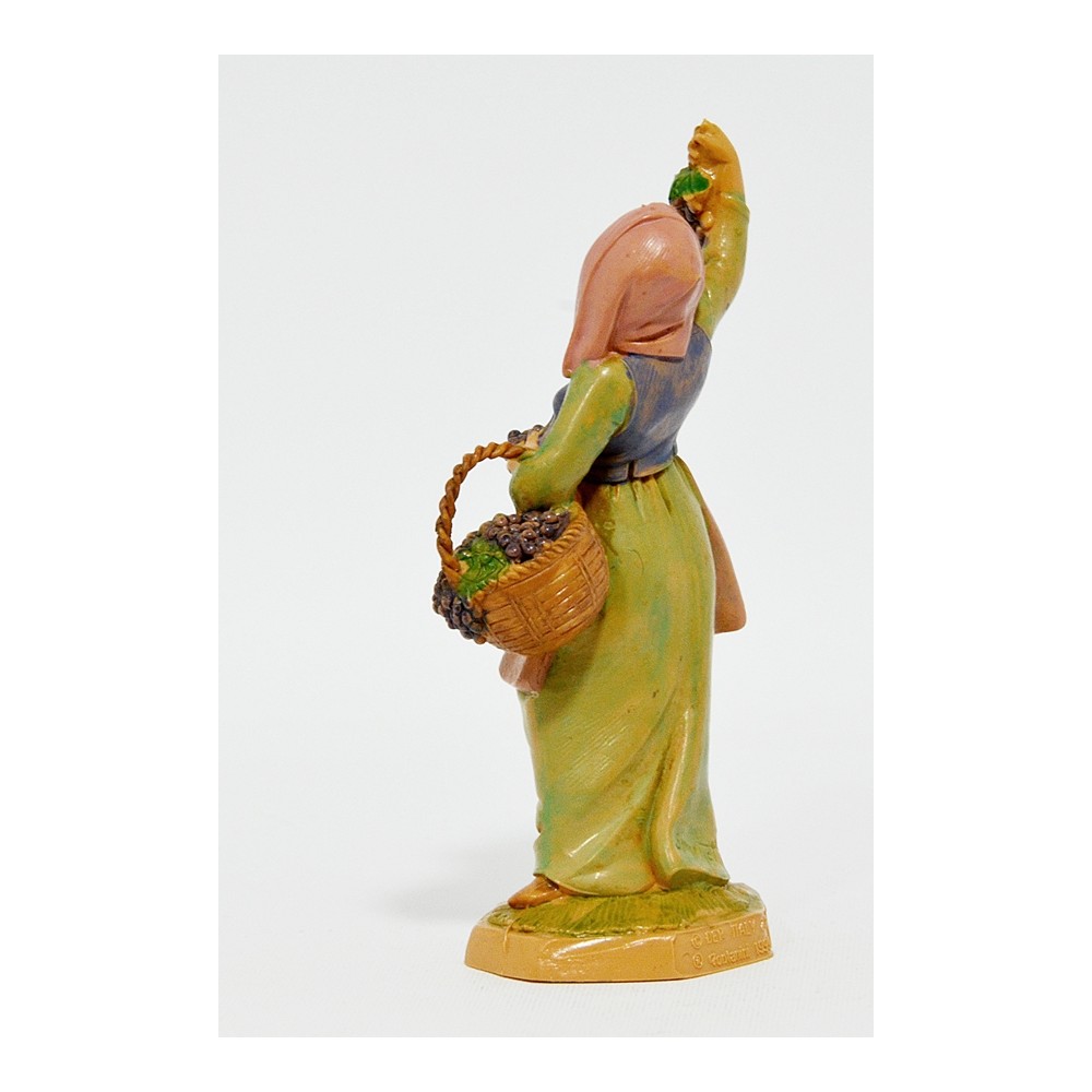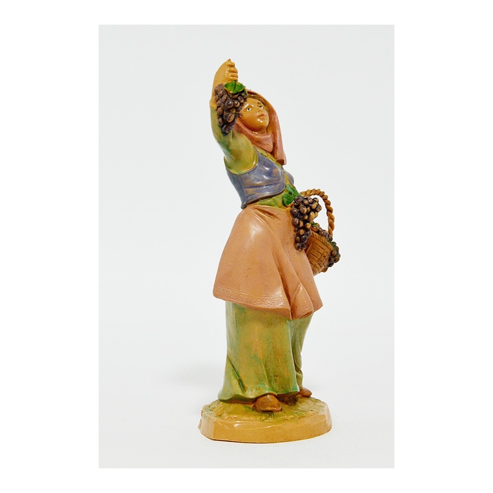 Statua del Personaggio Donna con Grappoli d'Uva nera in Mano e nel Cesto per il Presepe Fontanini da 12 cm.