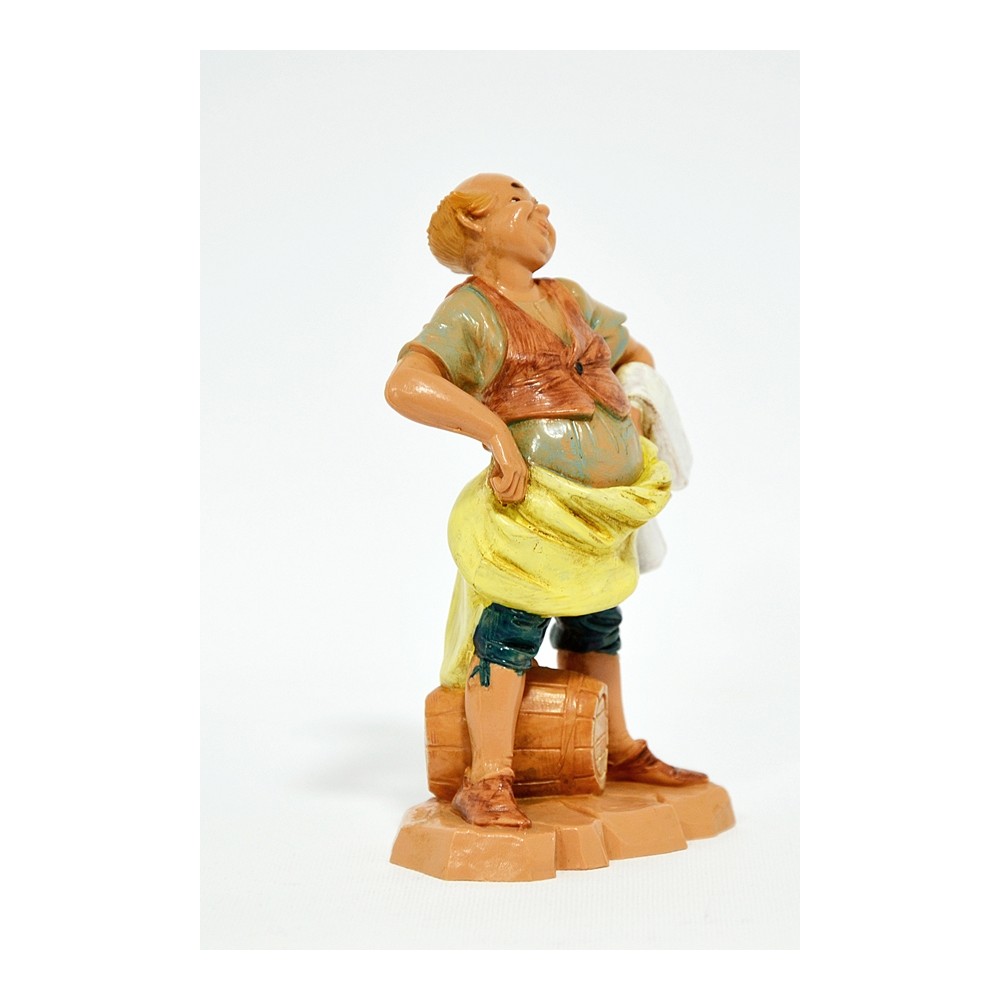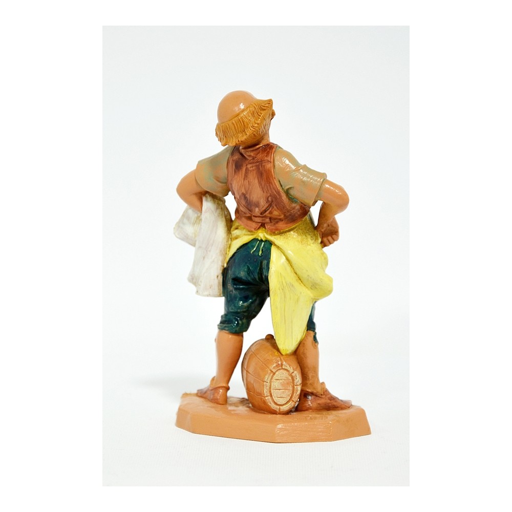 Statua del Personaggio Uomo Oste con straccio e con Botte di vino per il Presepe Fontanini da 12 cm.