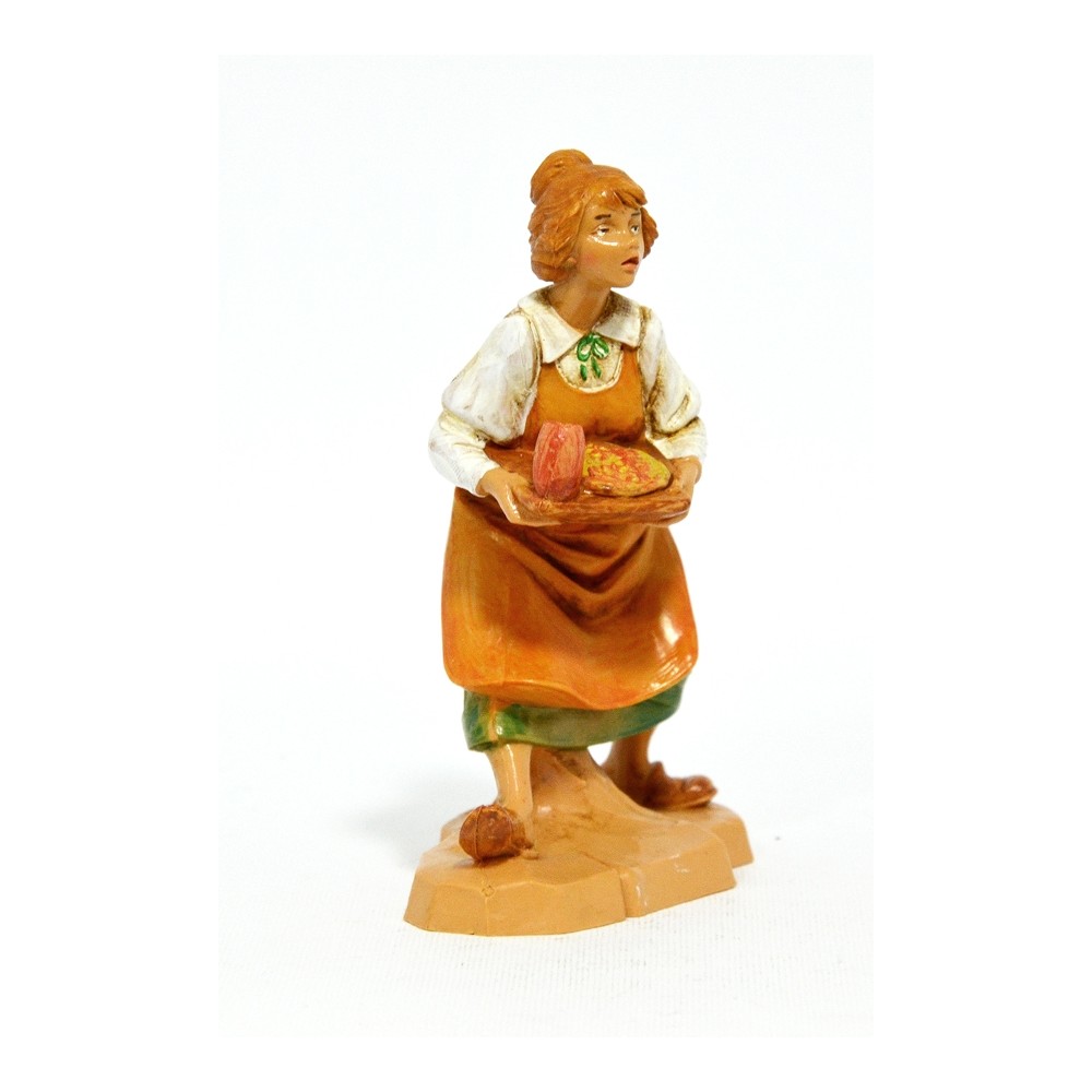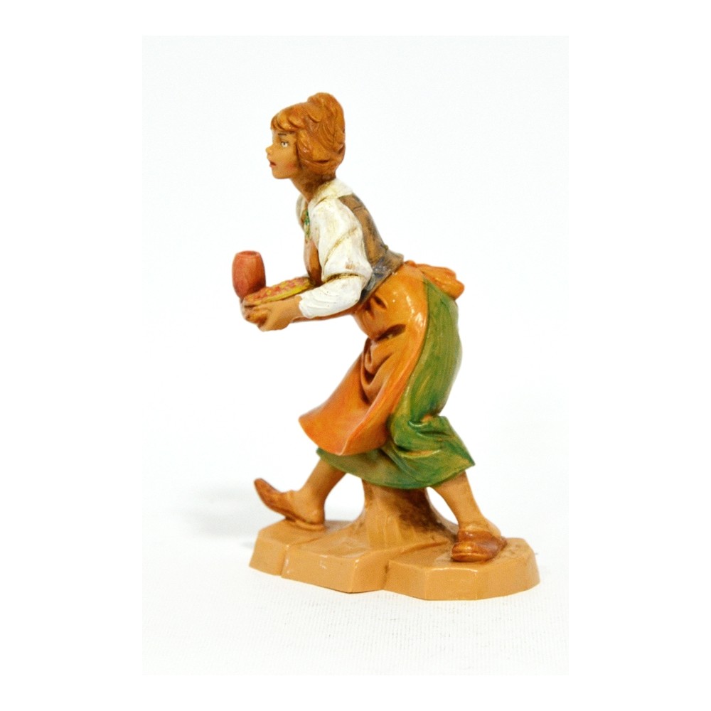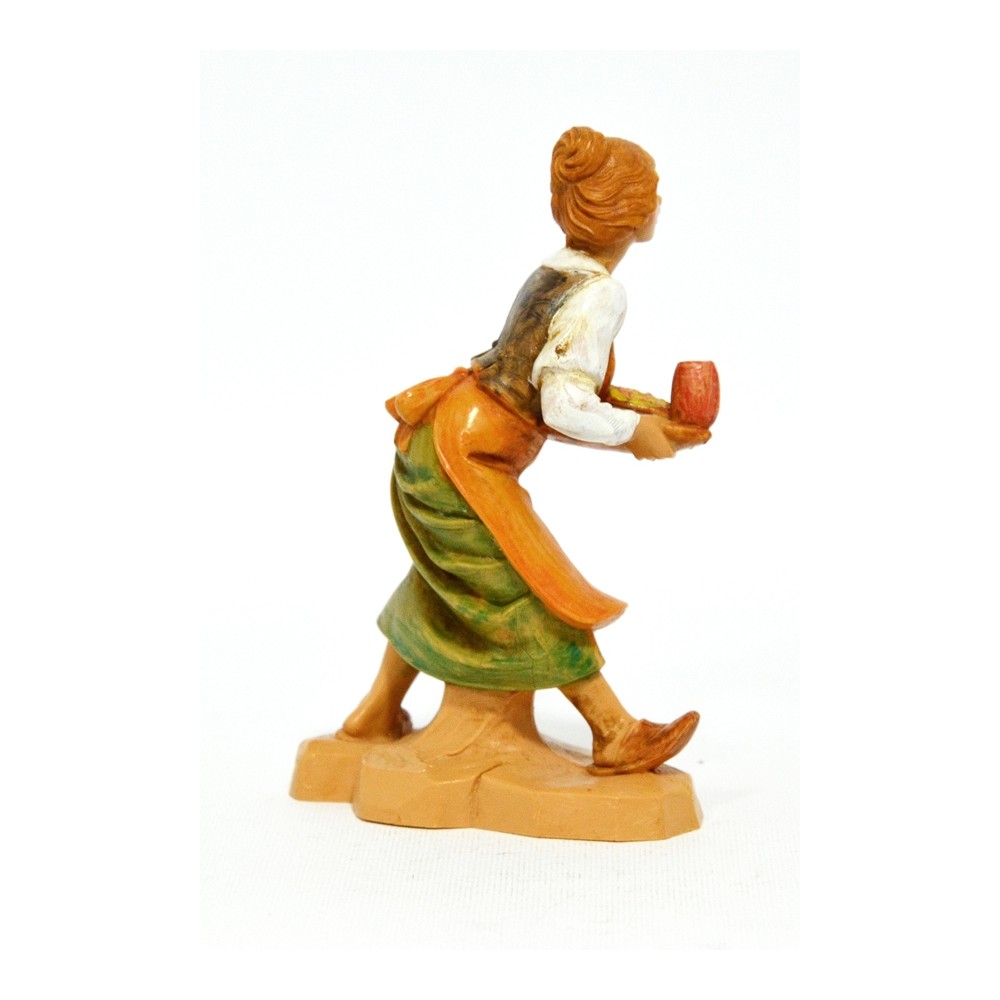 Statua del Personaggio Donna Cameriera con Vassoio e Bicchiere per il Presepe Fontanini da 12 cm.