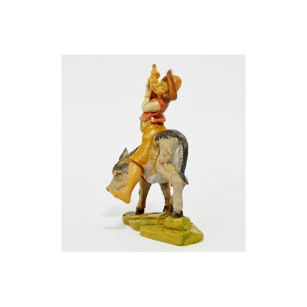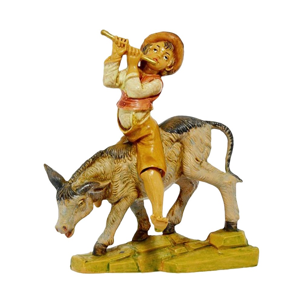 Statua del Personaggio Ragazzo che suona il Flauto su Asinello per il Presepe Fontanini da 12 cm.