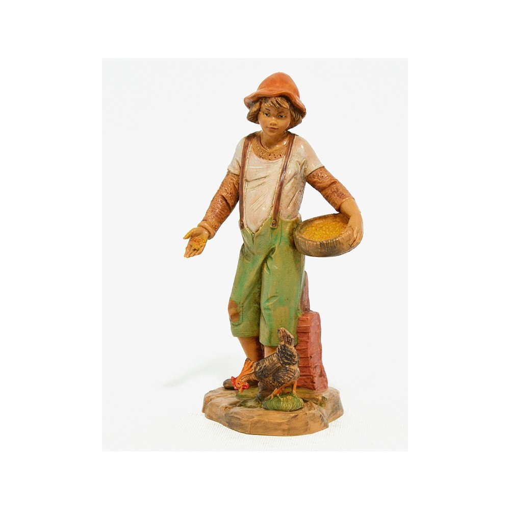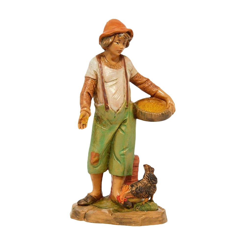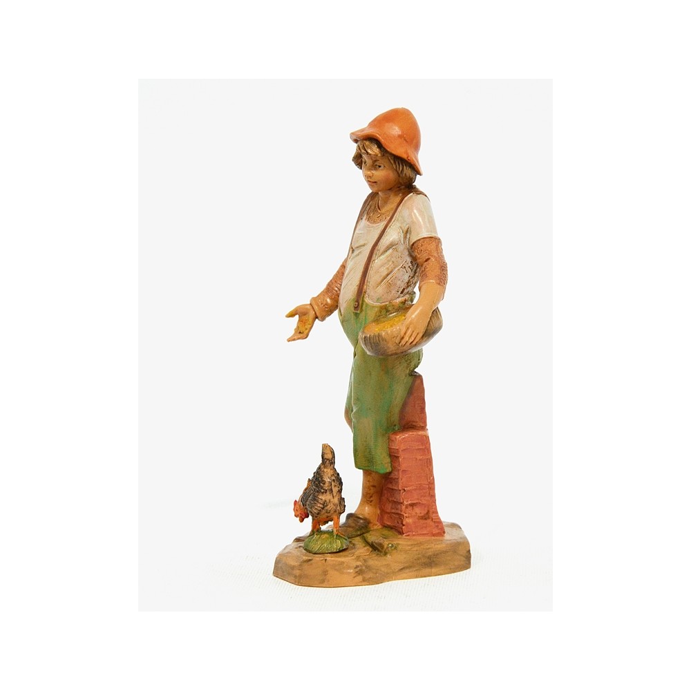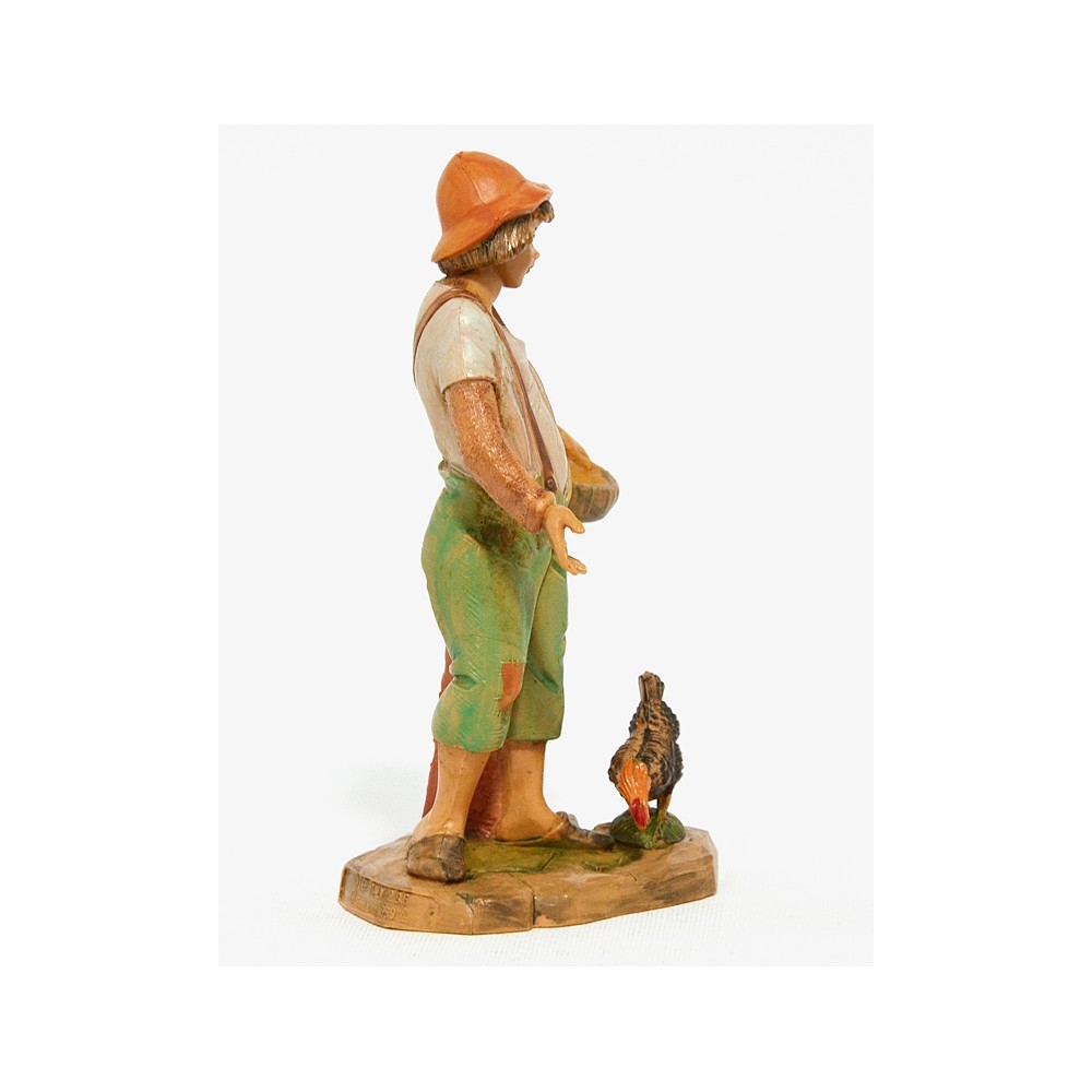 Statua del Personaggio Pastore Contadino che Semina con Gallo per il Presepe Fontanini da 12 cm.
