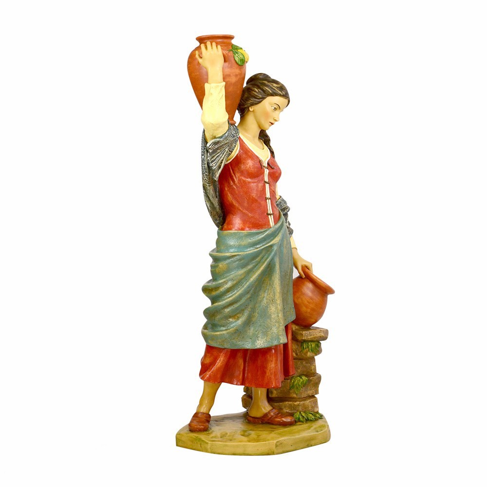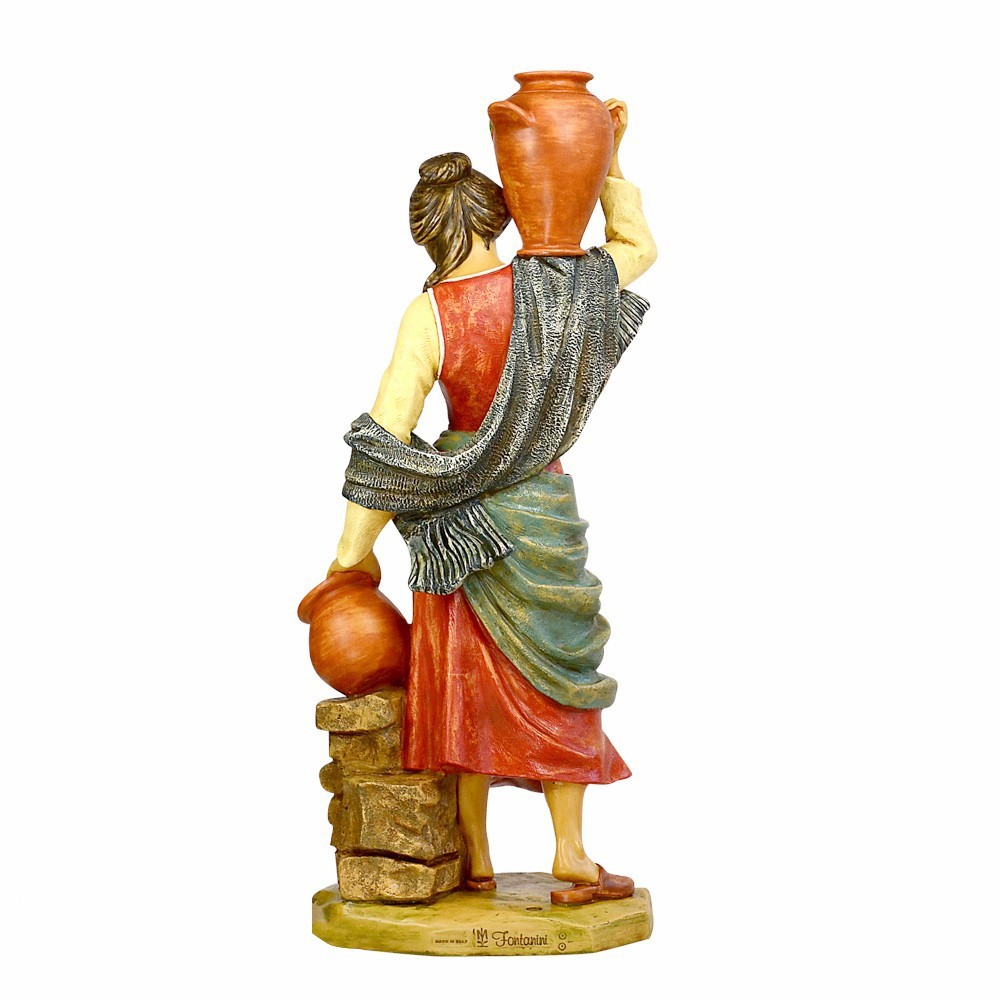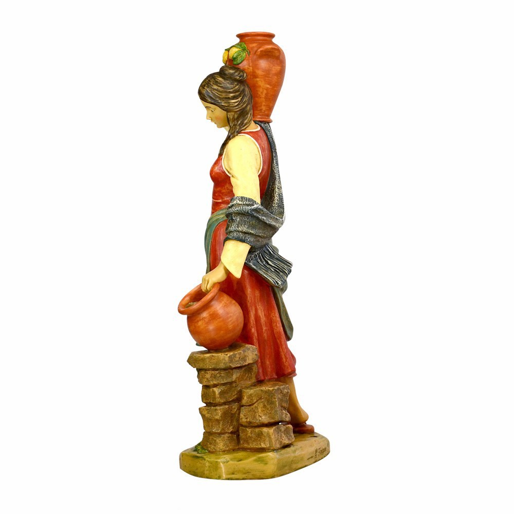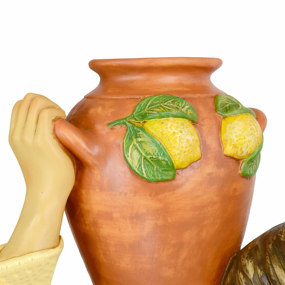 Statua pastorella con anfore prodotta dall'azienda Fontanini. Realizzata in resina adatta per presepe di grandi dimensioni da 125 cm. Dipinta finemente a mano. Prodotto esclusivo di alta qualità. 100% italiano.