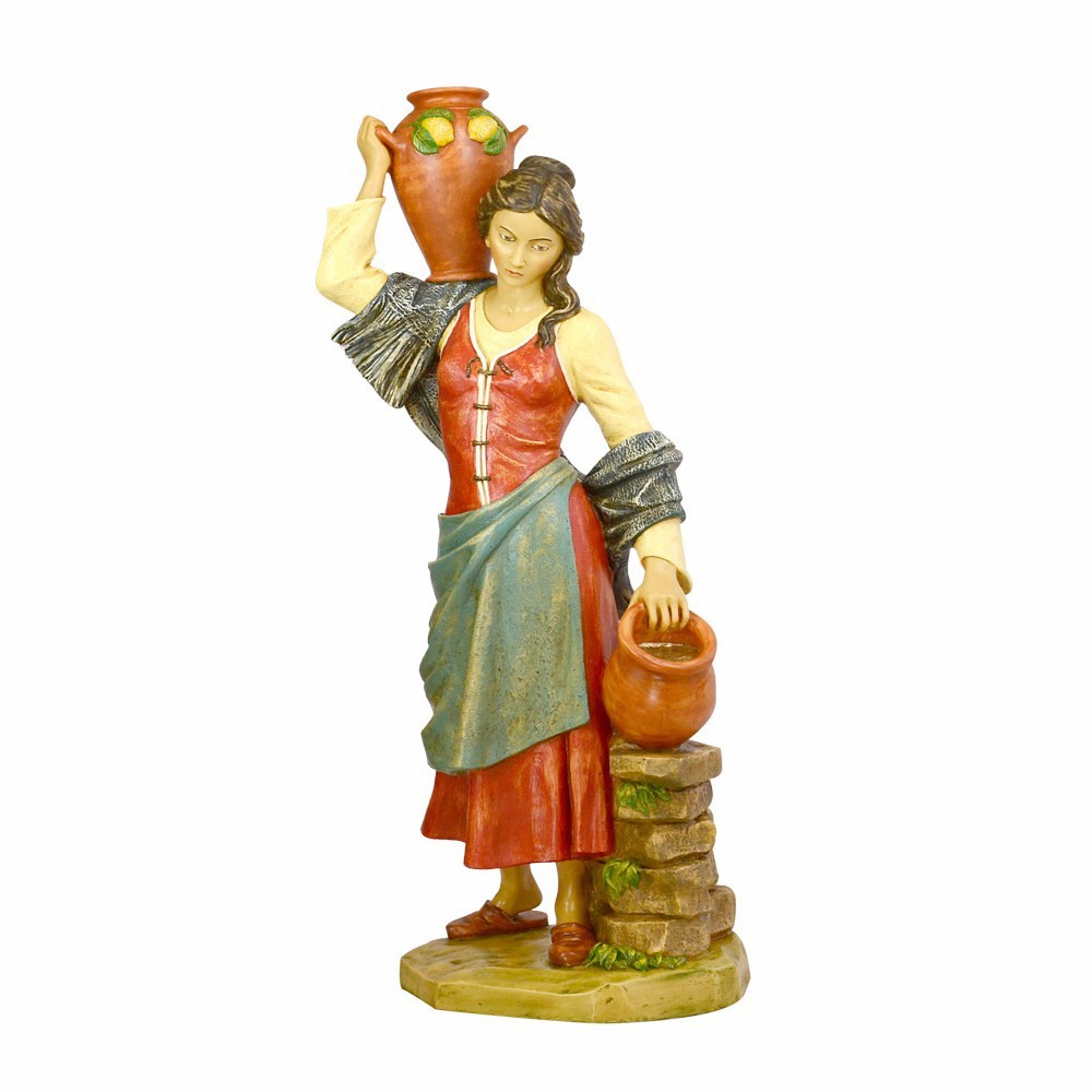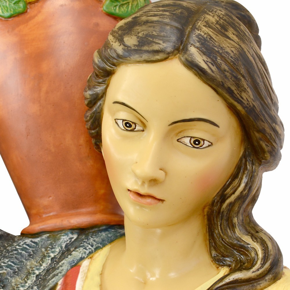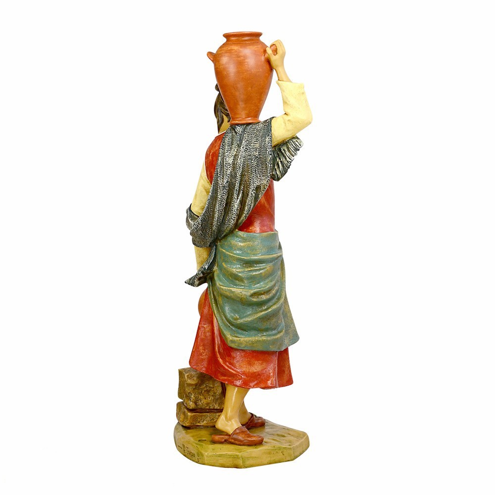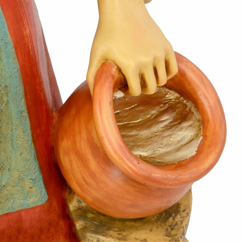 Statua pastorella con anfore prodotta dall'azienda Fontanini. Realizzata in resina adatta per presepe di grandi dimensioni da 125 cm. Dipinta finemente a mano. Prodotto esclusivo di alta qualità. 100% italiano.