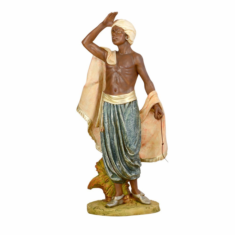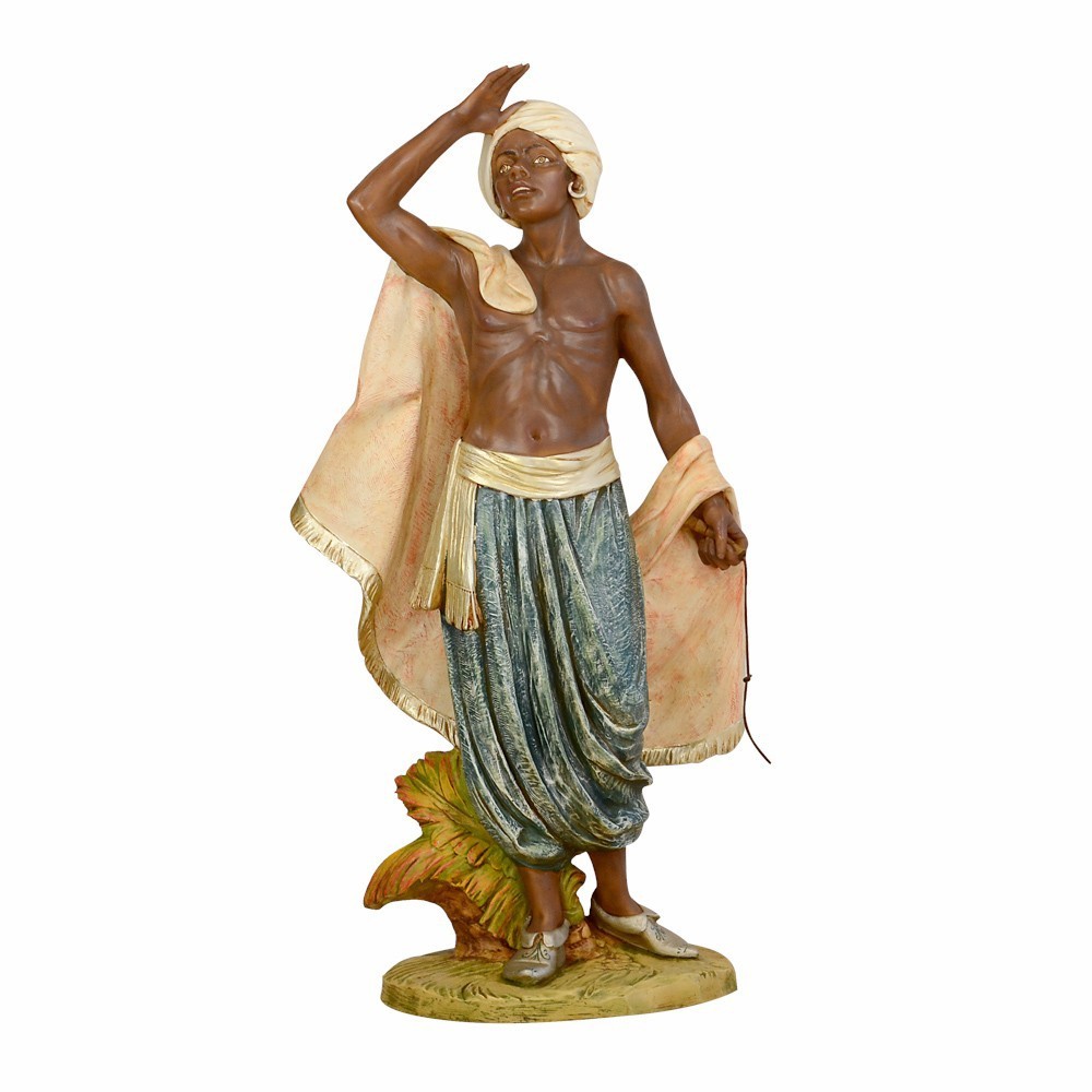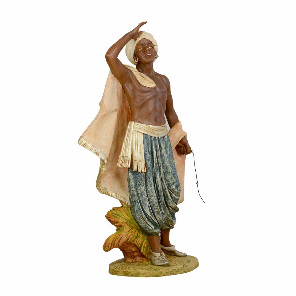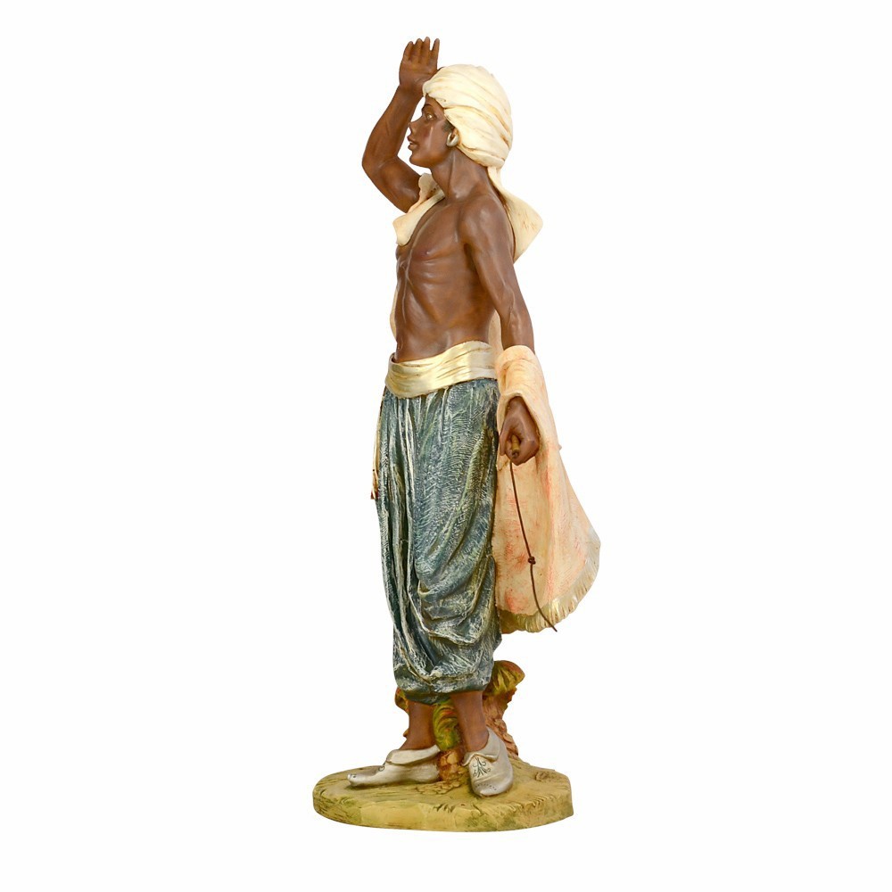 Statua Cammelliere realizzata in resina ed è adatta per presepe di grandi dimensioni, proporzionata per statue alte 125 cm.
