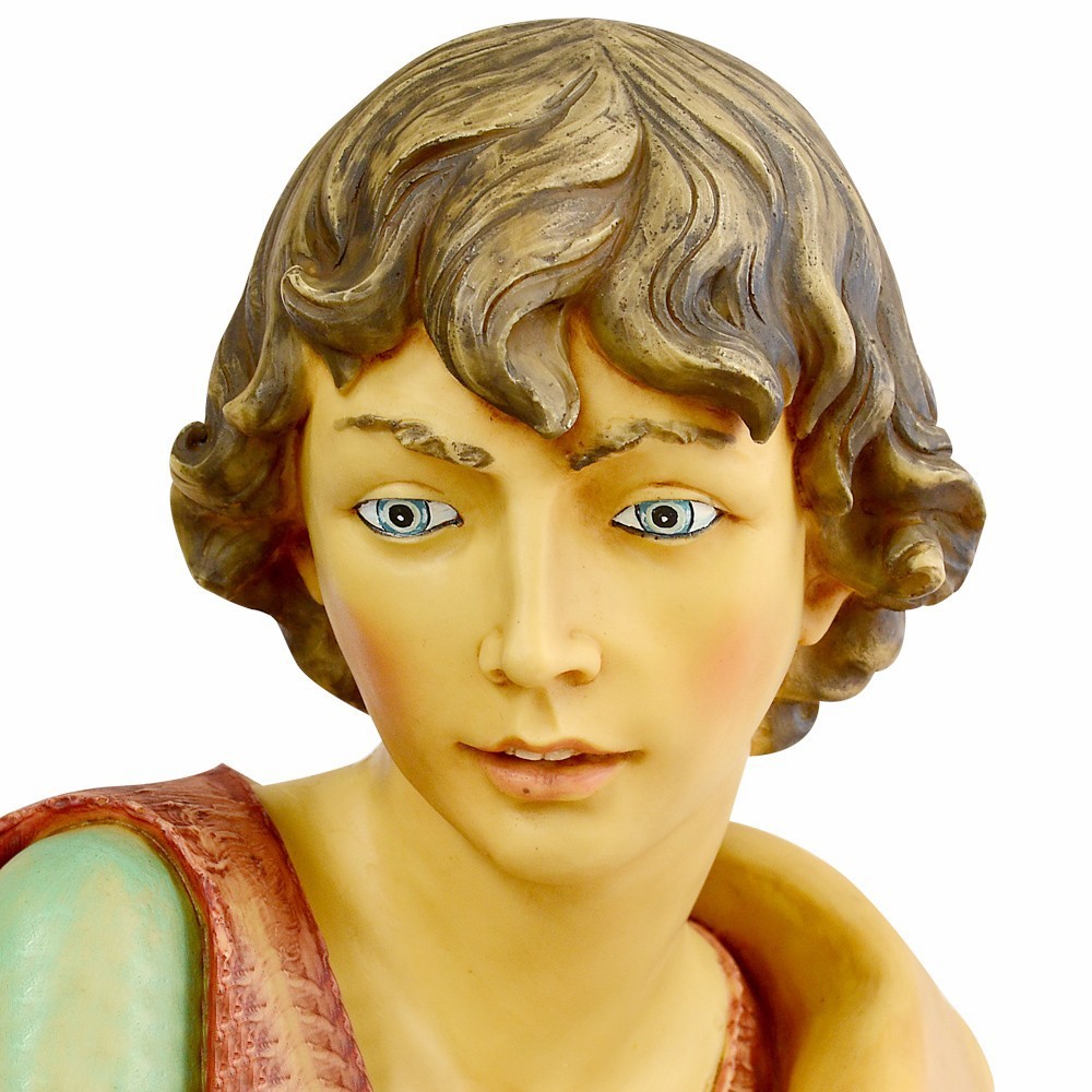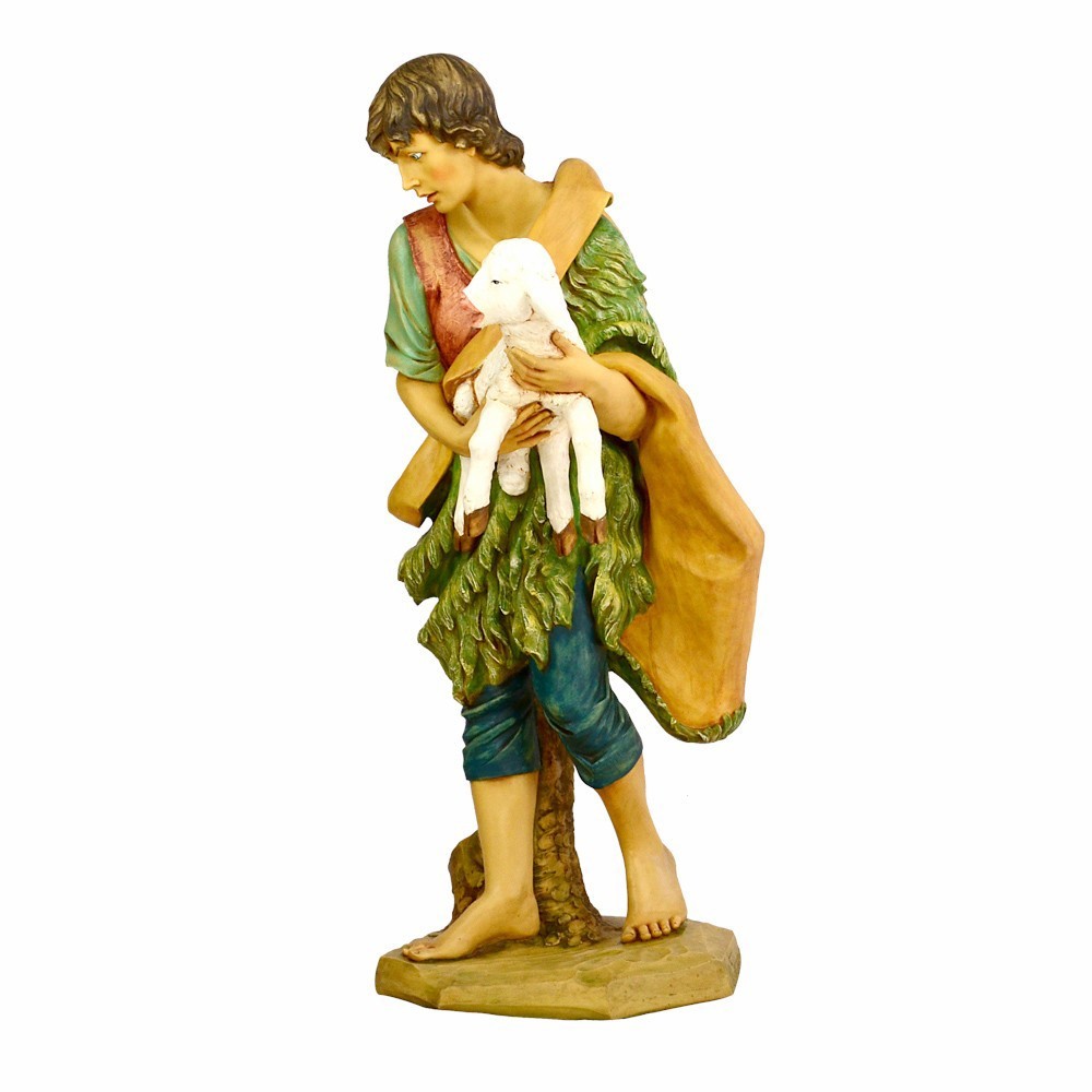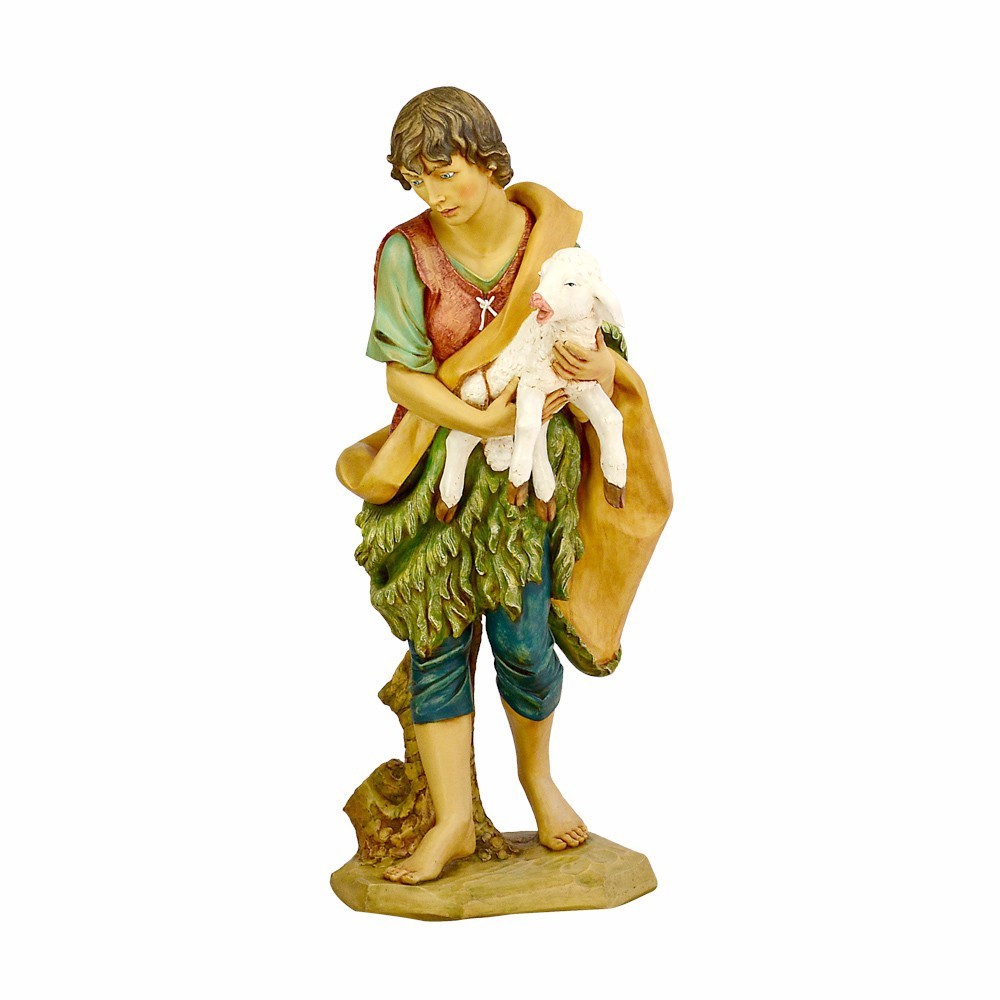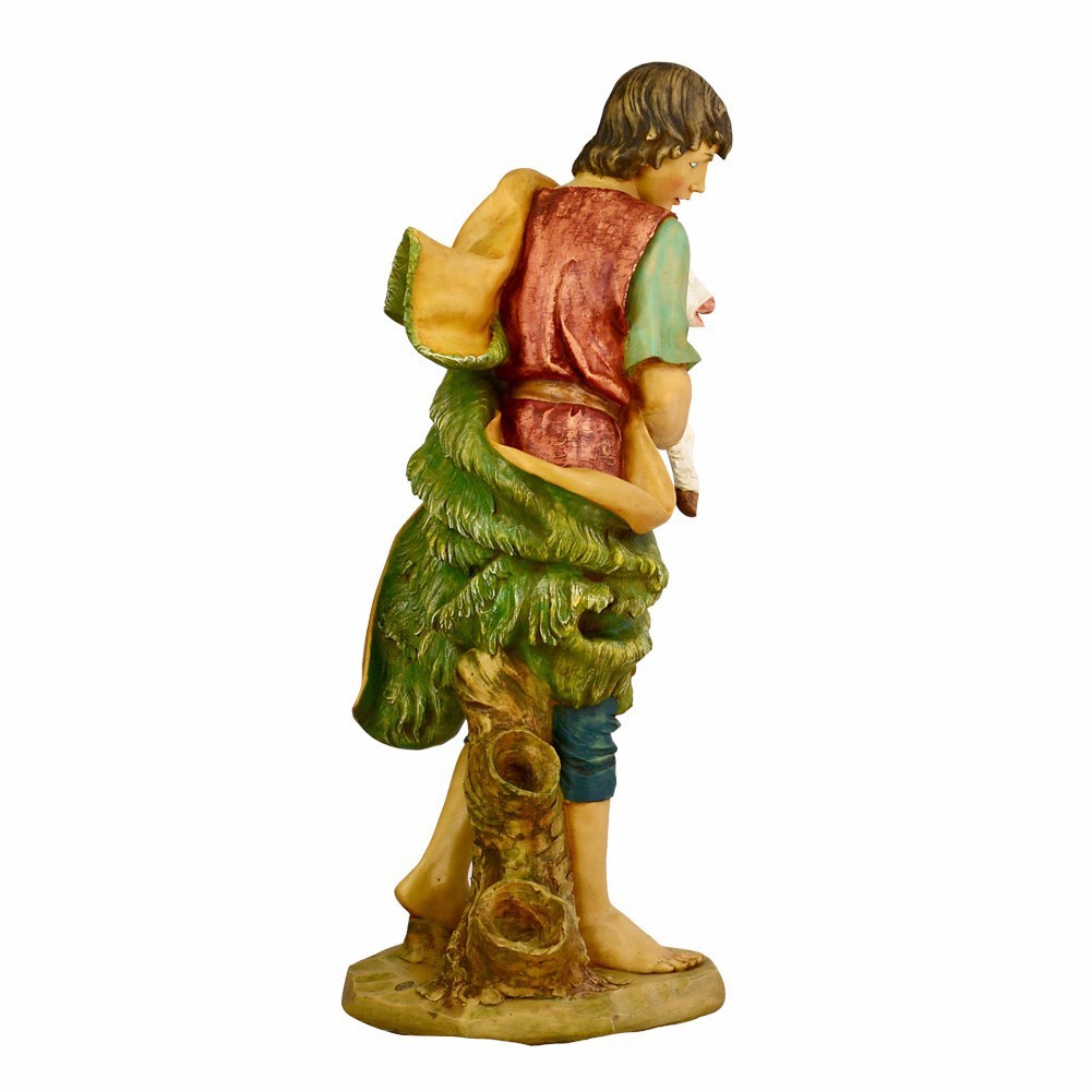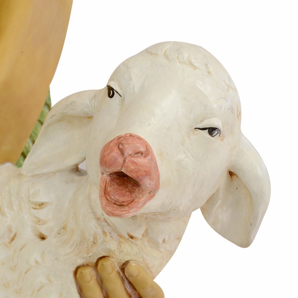 Pastore con pecora in braccio. La statua è realizzata in resina ed è adatta per presepe di grandi dimensioni, proporzionata per statue alte 125 cm.
