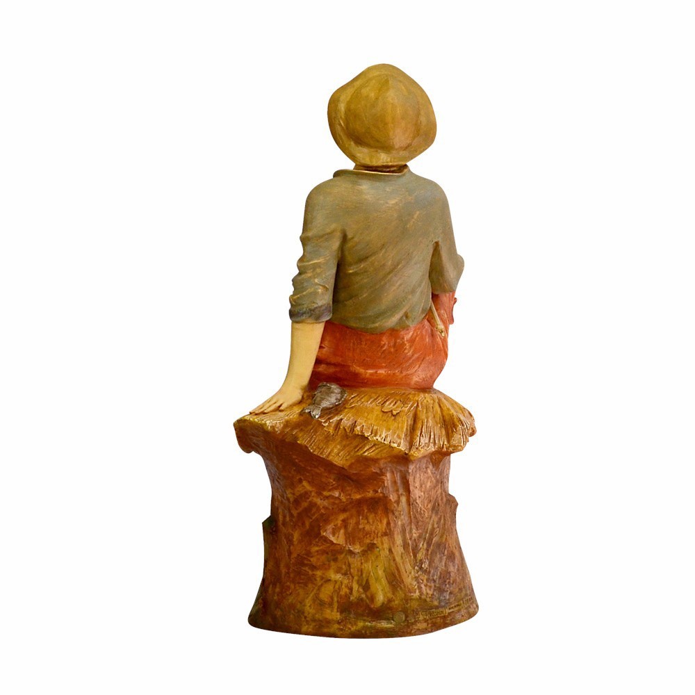 Statua Fontanini - Il Pescatore, seduto, con canna in mano.