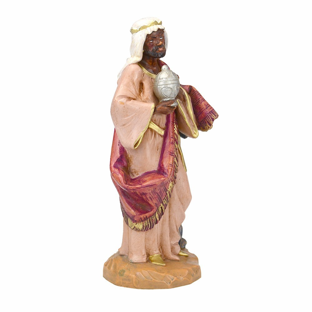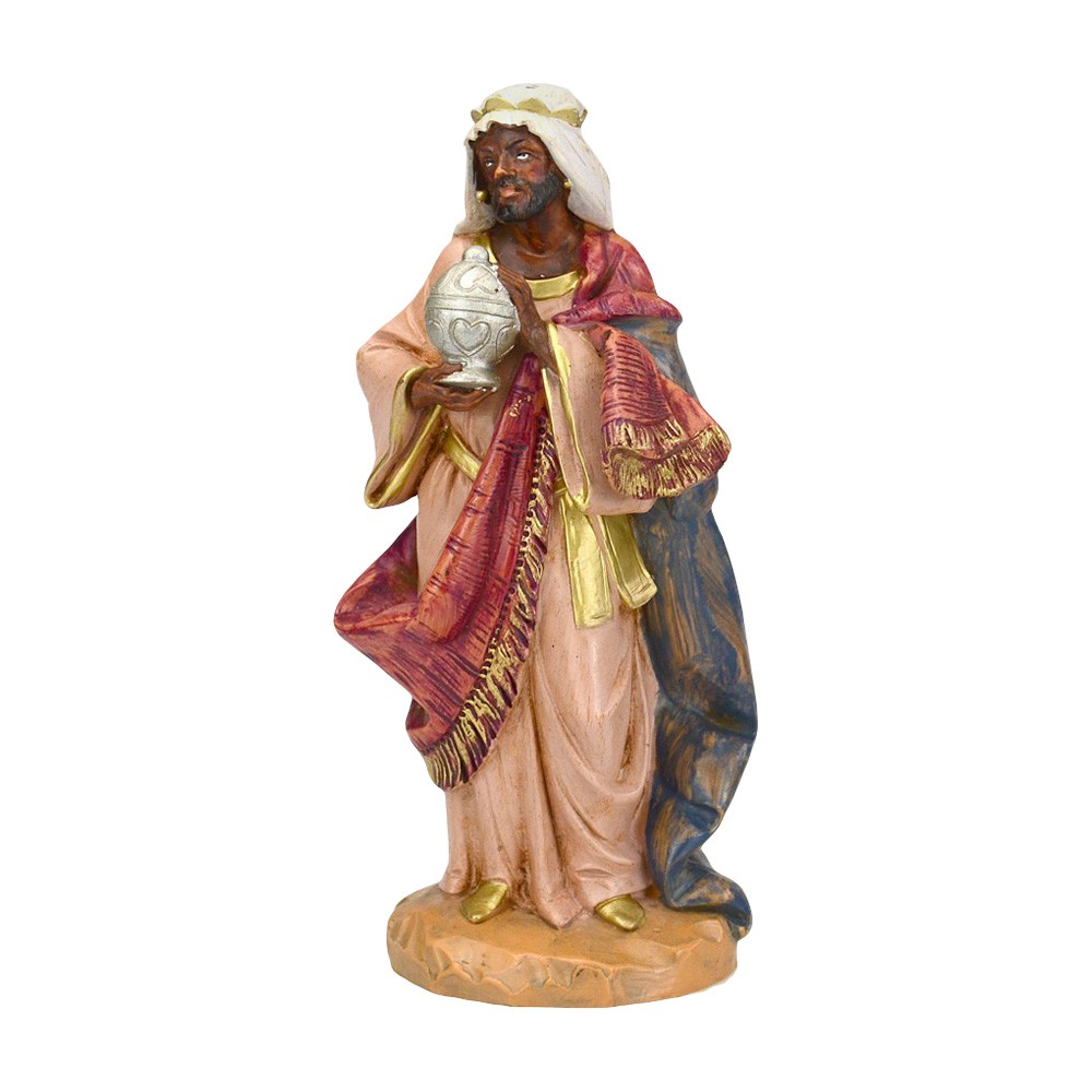 RE MAGIO MORO in piedi adatta per presepe fontanini da 15 cm. Realizzata in PVC materiale infrangile e dipinta a mano.