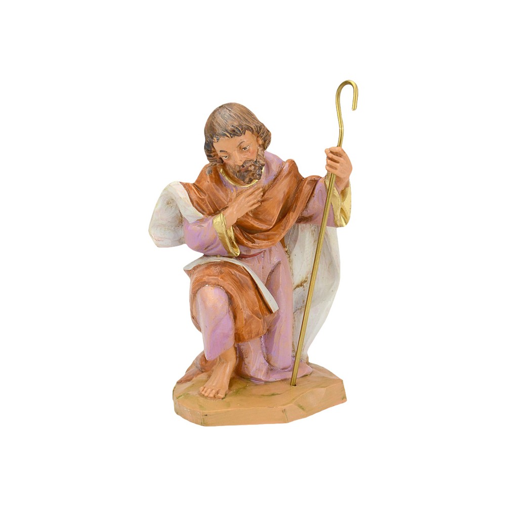 Statua San Giuseppe in ginocchio per il Presepe Fontanini da cm 17. Dipinta interamente a mano e realizzata in PVC materiale sintetico infrangibile.