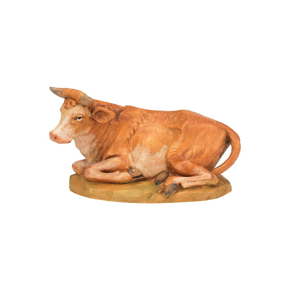 Bue Seduto di colore marrone per la Natività del Presepe Fontanini. Proporzionato x statue di 17 cm. Realizzato in Italia e dipinto interamente a mano, dall'azienda Fontanini.