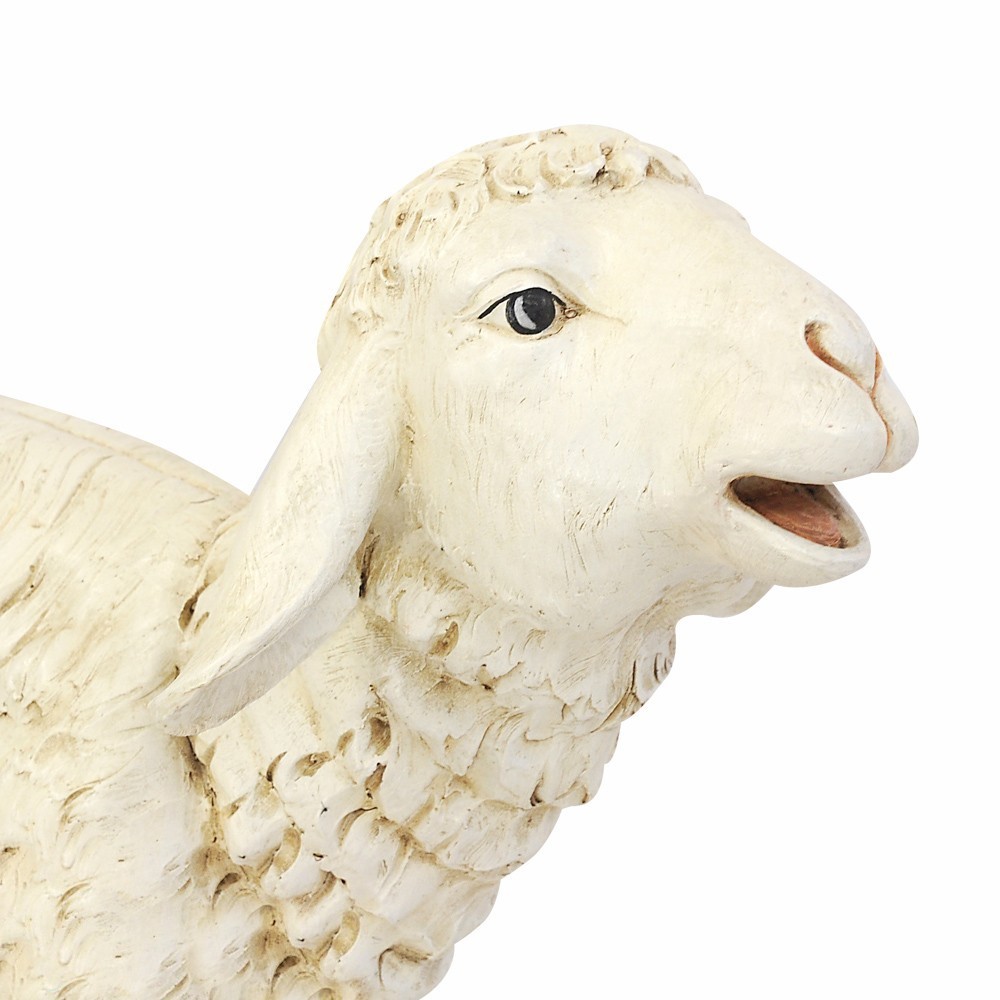 Agnello Fontanini realizzato in resina. Proporzionato per statue da 180 cm. Dipinto interamente a mano da personale qualificato, avendo cura in ogni dettaglio.
