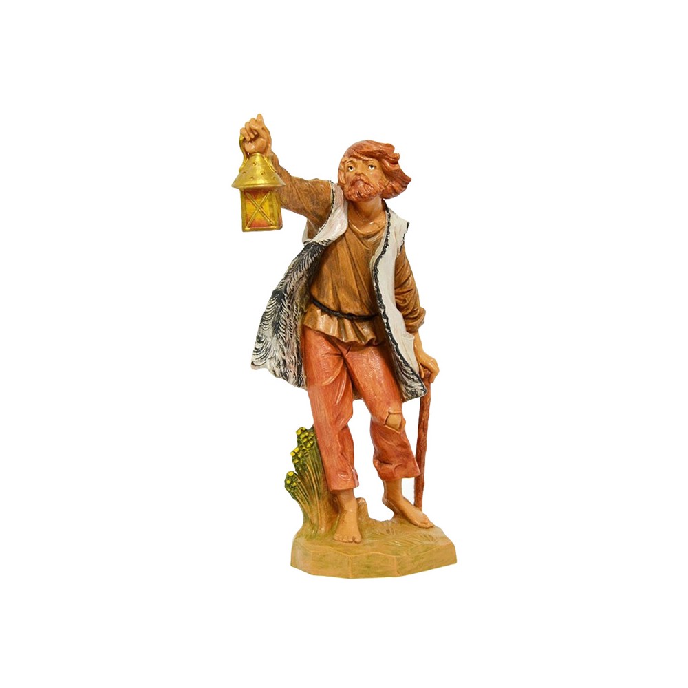 Statua del personaggio Pastore con lanterna per il Presepe Fontanini da 19 cm.