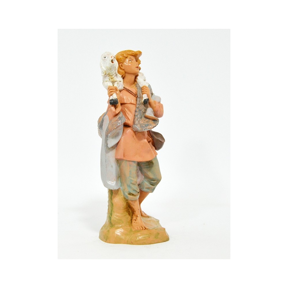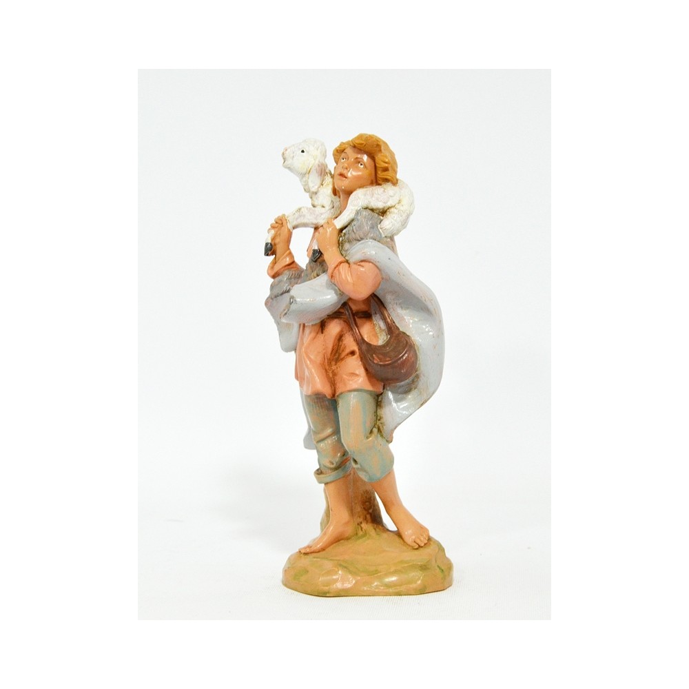 Pastore con Agnello sulle Spalle e Bisaccia per il Presepe Fontanini da 19 cm.