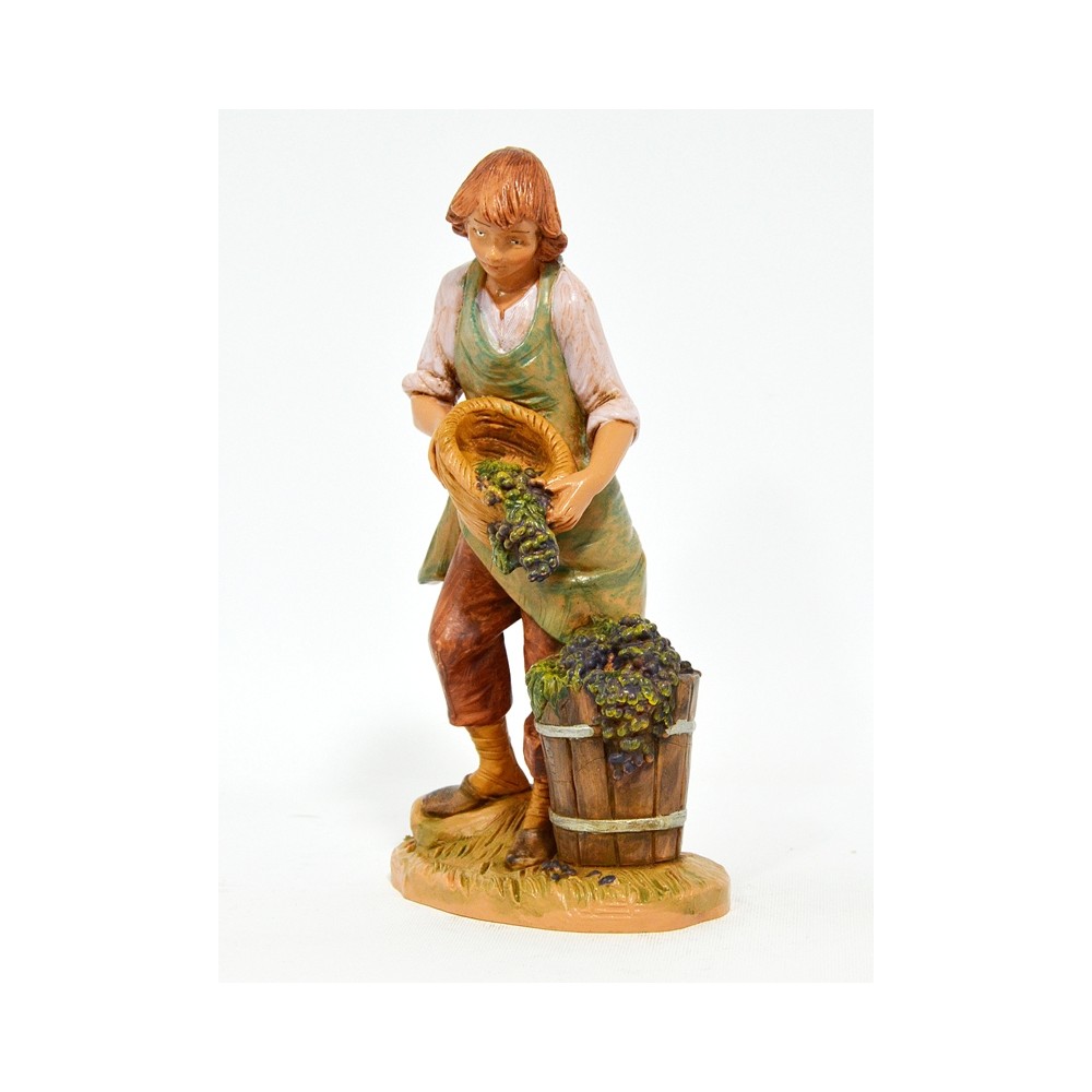 Pastore Vignaiolo con Tino e Uva nel Cesto per il Presepe Fontanini da 19 cm.