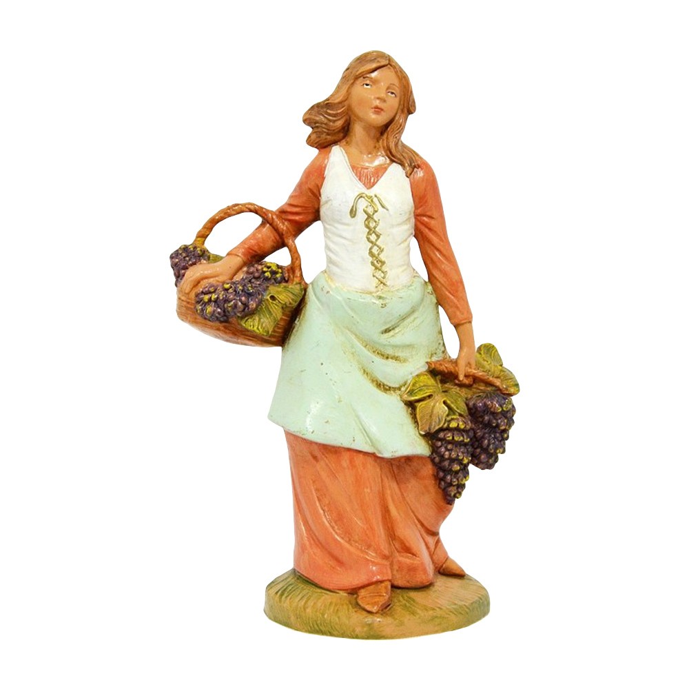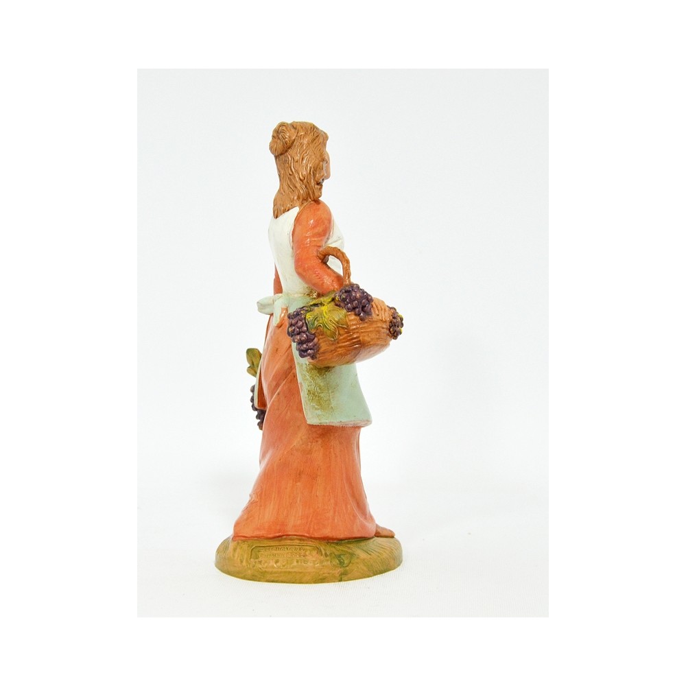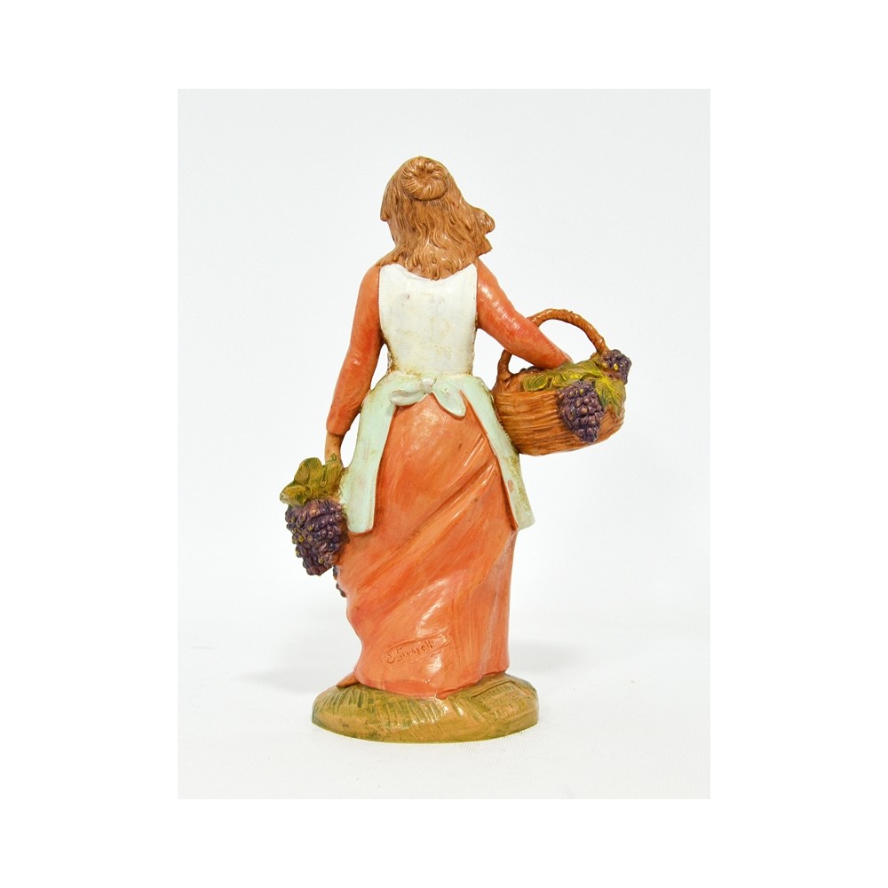 Pastorella con Uva nel cesto e grappoli in mano per il Presepe Fontanini da 19 cm.