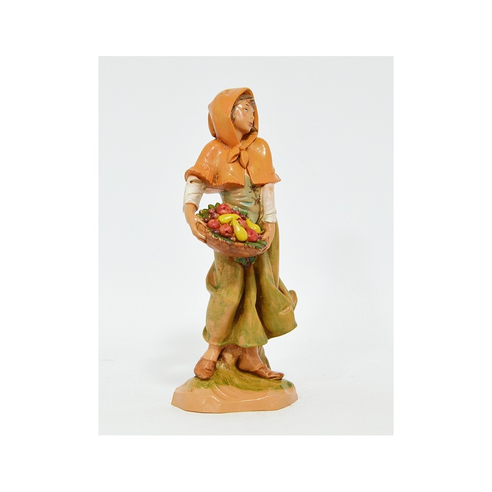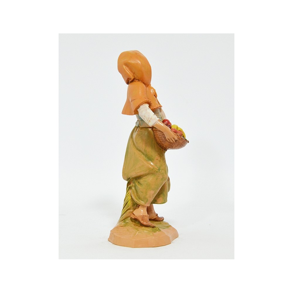 Pastorella con Cesto di Frutta Pere e Mele per il Presepe Fontanini da 19 cm.