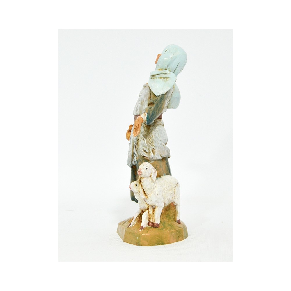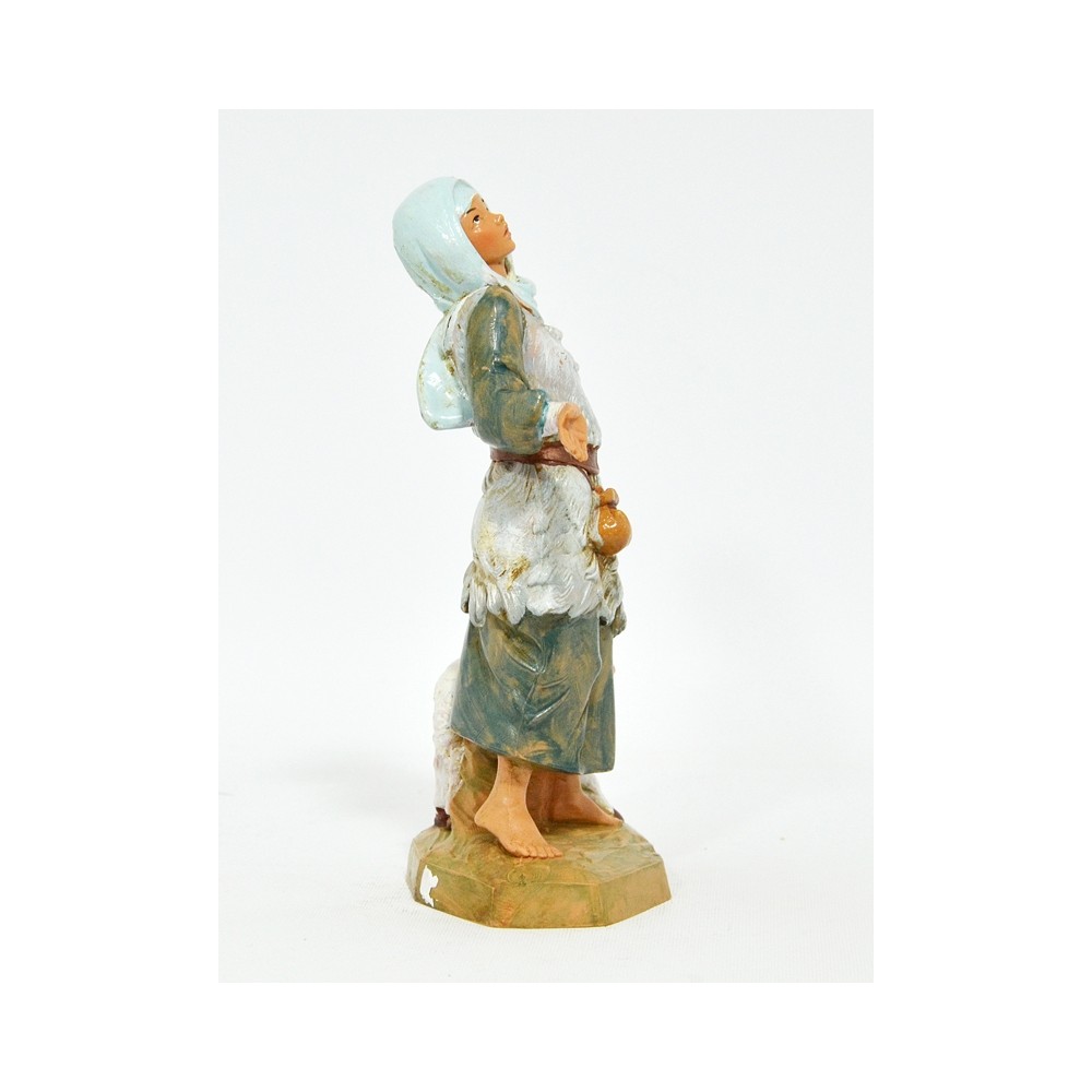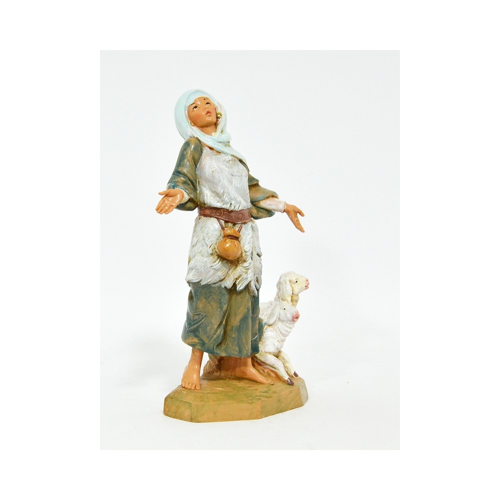 Pastorella con Braccia aperte e Agnellini per il Presepe Fontanini da 19 cm.