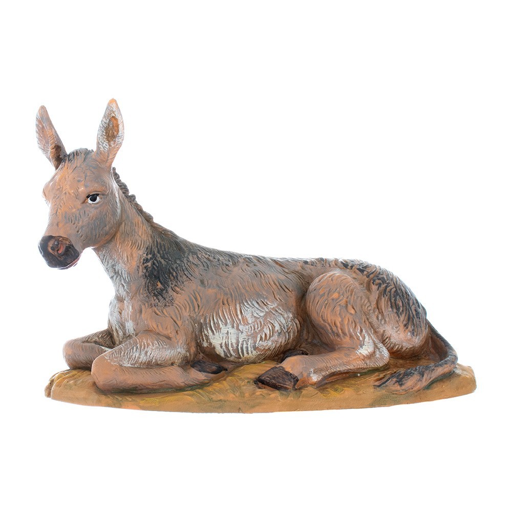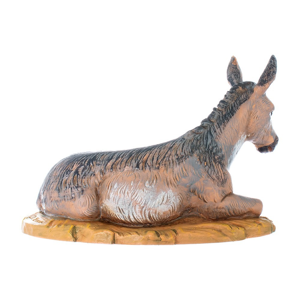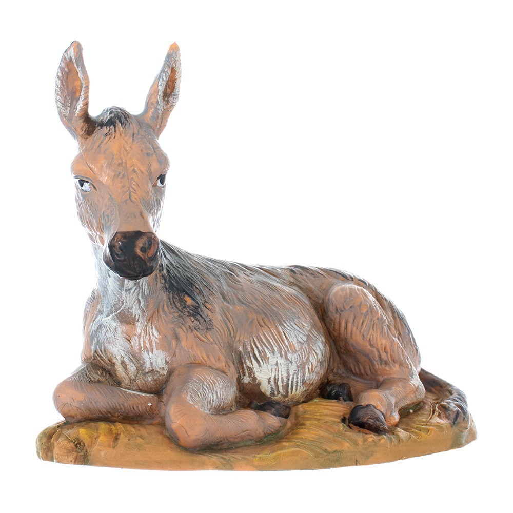 Asinello Sdraiato per la Natività del Presepe Fontanini. E' adatto per ambientazione presepe da 19 cm. Realizzato in Italia e dipinto interamente a mano, dall'azienda Fontanini.