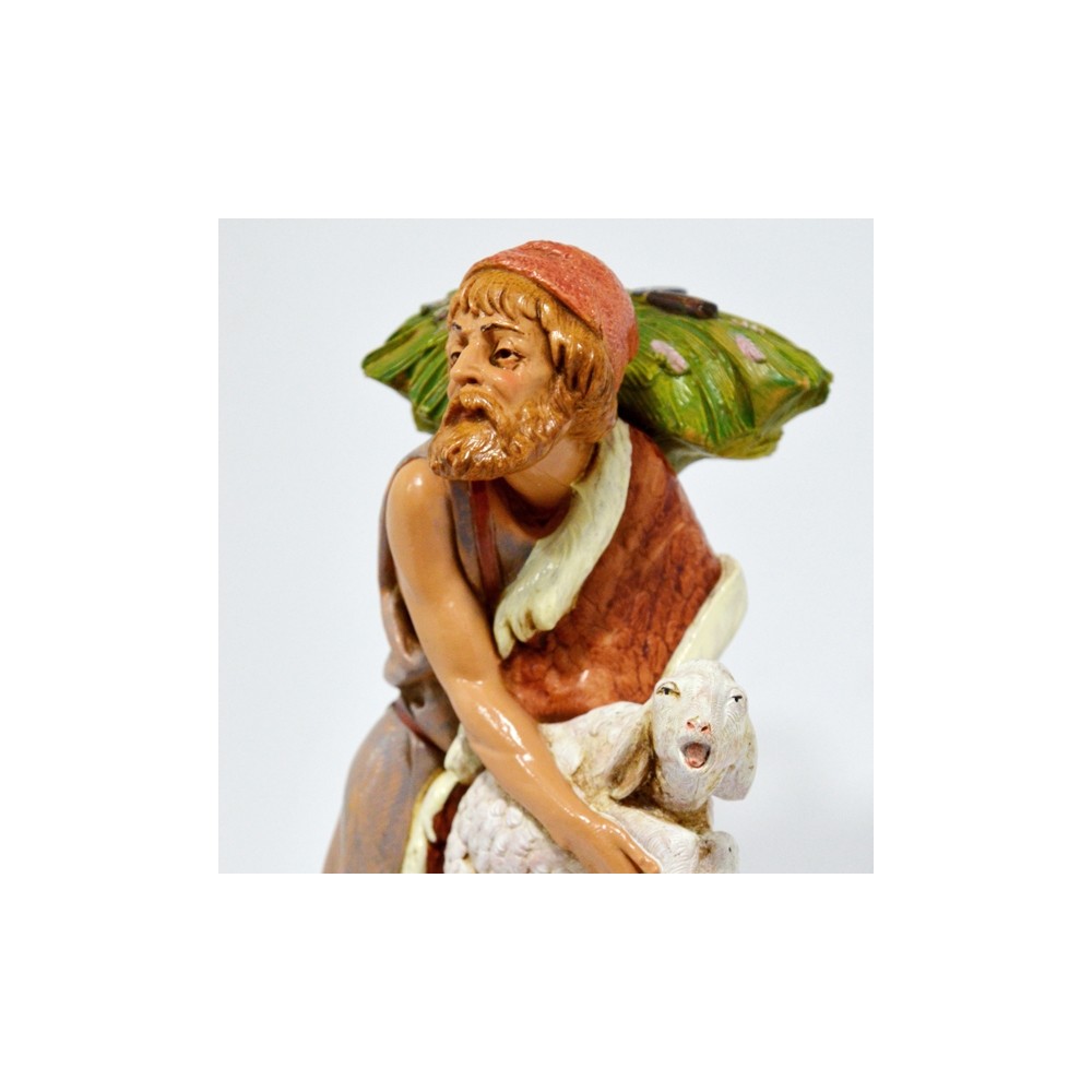 Personaggio Pastore Anziano con Agnellino in braccio per il Presepe Fontanini cm 30.