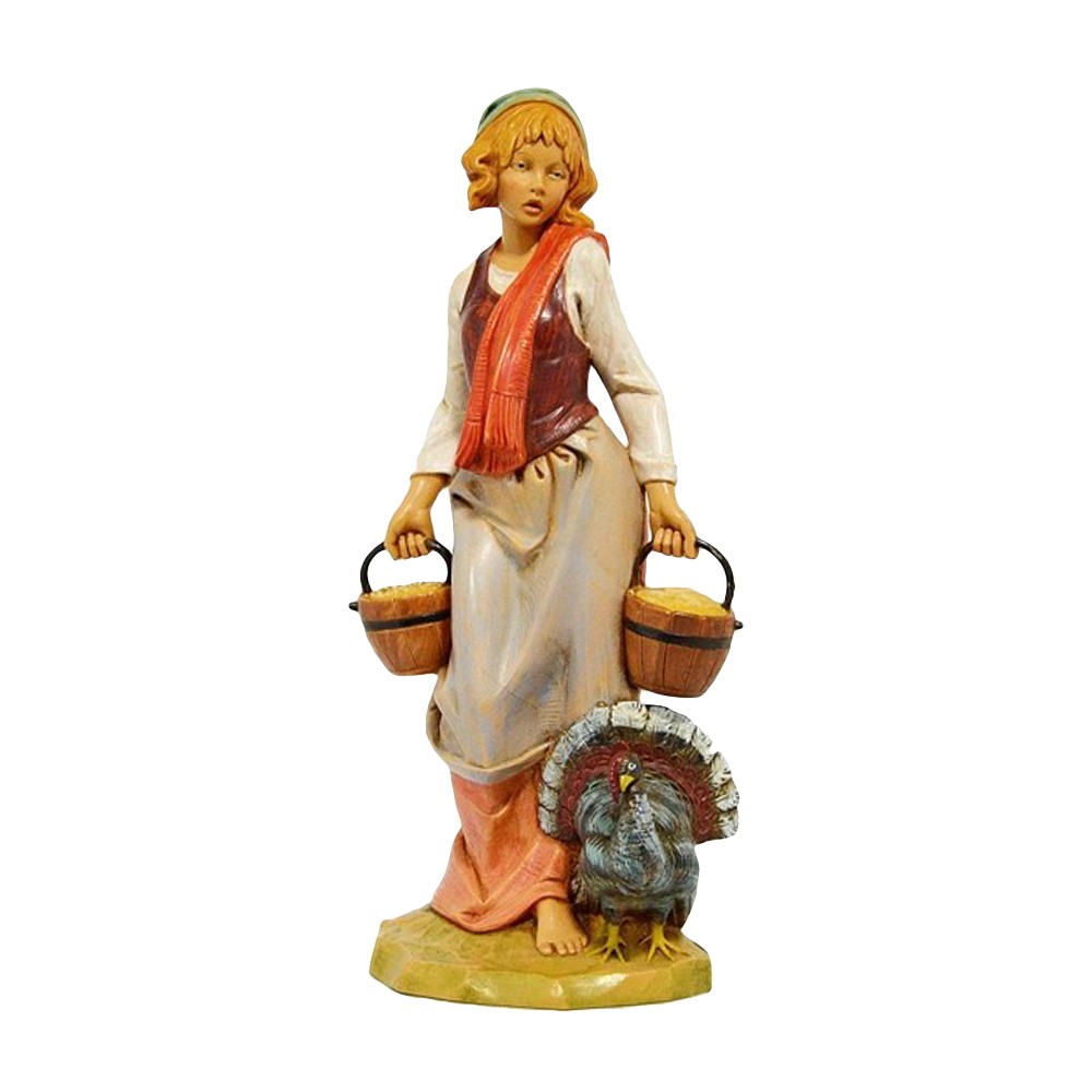 Personaggio Pastorella con Secchi di Mangime e Tacchino per il Presepe Fontanini da 30 cm.