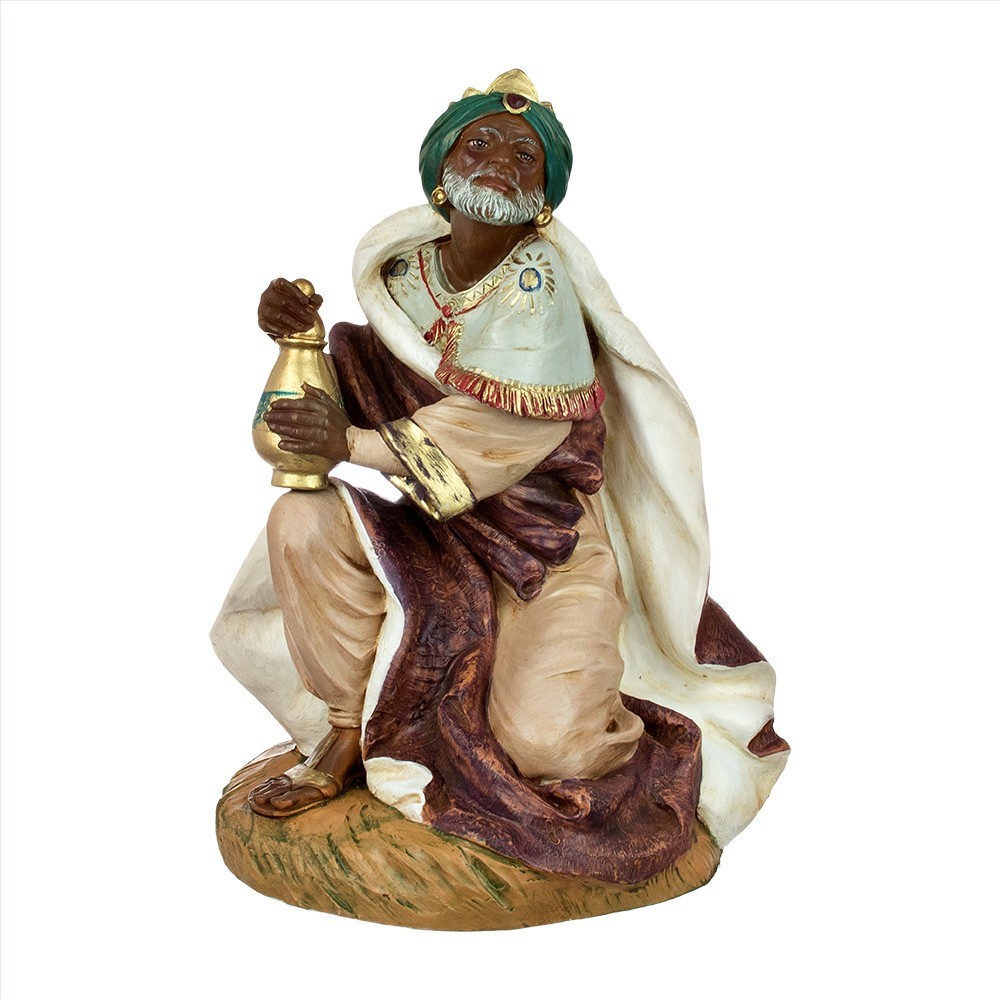 Statua Re Mulatto in ginocchio per il presepe Fontanini.