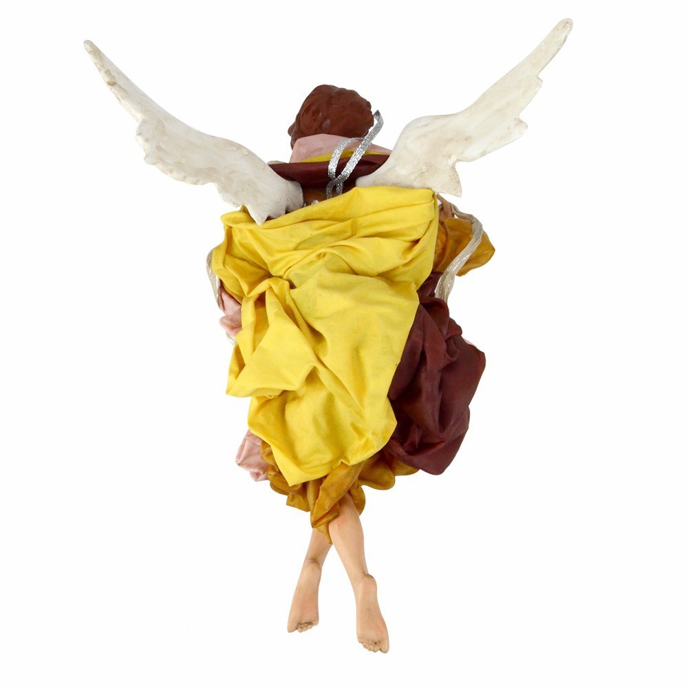 Realizzato in vera terracotta, l'angelo è dipinto a mano con estrema cura per i dettagli. Gli abiti in stoffa ricoprono l'angelo con eleganza, frutto del lavoro esperto di artigiani che si dedicano con passione alla creazione di opere religiose.