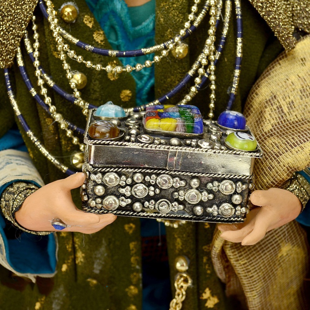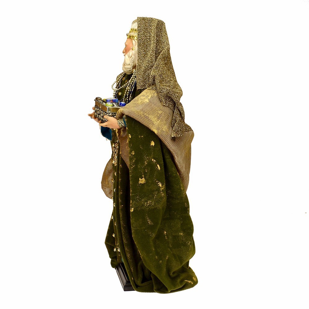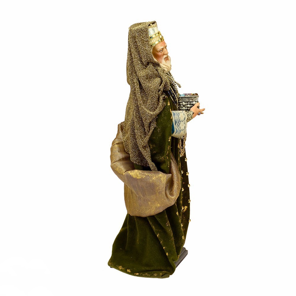 Statua del Re Magio Bianco in vera terracotta, realizzata con maestria da esperti artigiani italiani. Questo pastore, perfetto per presepi napoletani, è caratterizzato dalla lavorazione artigianale della terracotta, dipinta e modellata con grande attenzione ai dettagli. Gli abiti in tessuto, finemente realizzati, donano alla statua un aspetto elegante e autentico. Proporzionata per un presepe da 45 cm, questa statua completa perfettamente scene di Natività con un tocco ulteriore di tradizione e qualità artigianale. Ogni pezzo è unico, creato in Italia da mani esperte che curano ogni minimo dettaglio per un risultato impeccabile e fedele alla tradizione del presepe in terracotta.