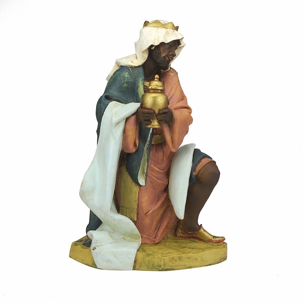 RE MAGIO MORO in ginocchio. Questa statua è adatta per presepe fontanini da 52 cm.