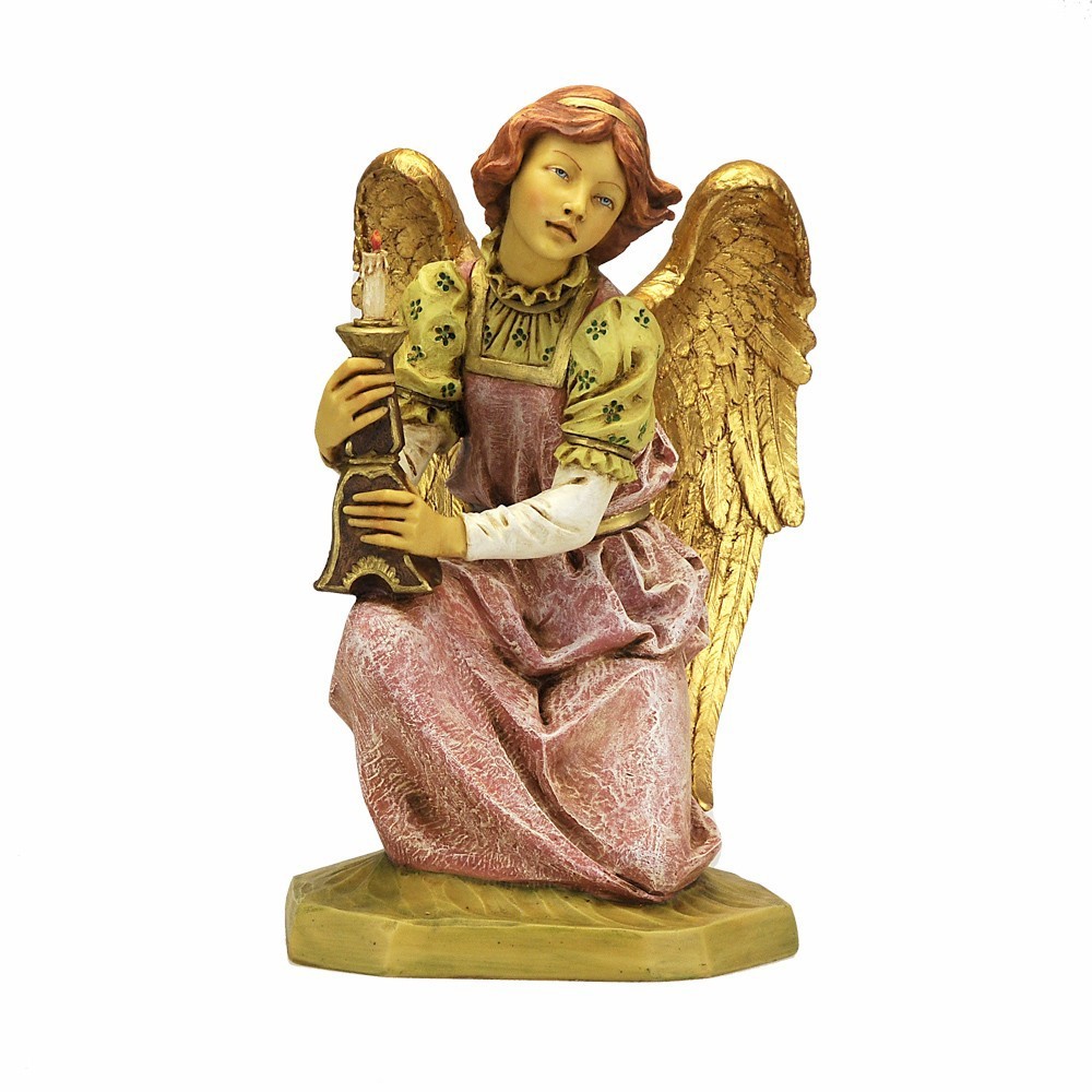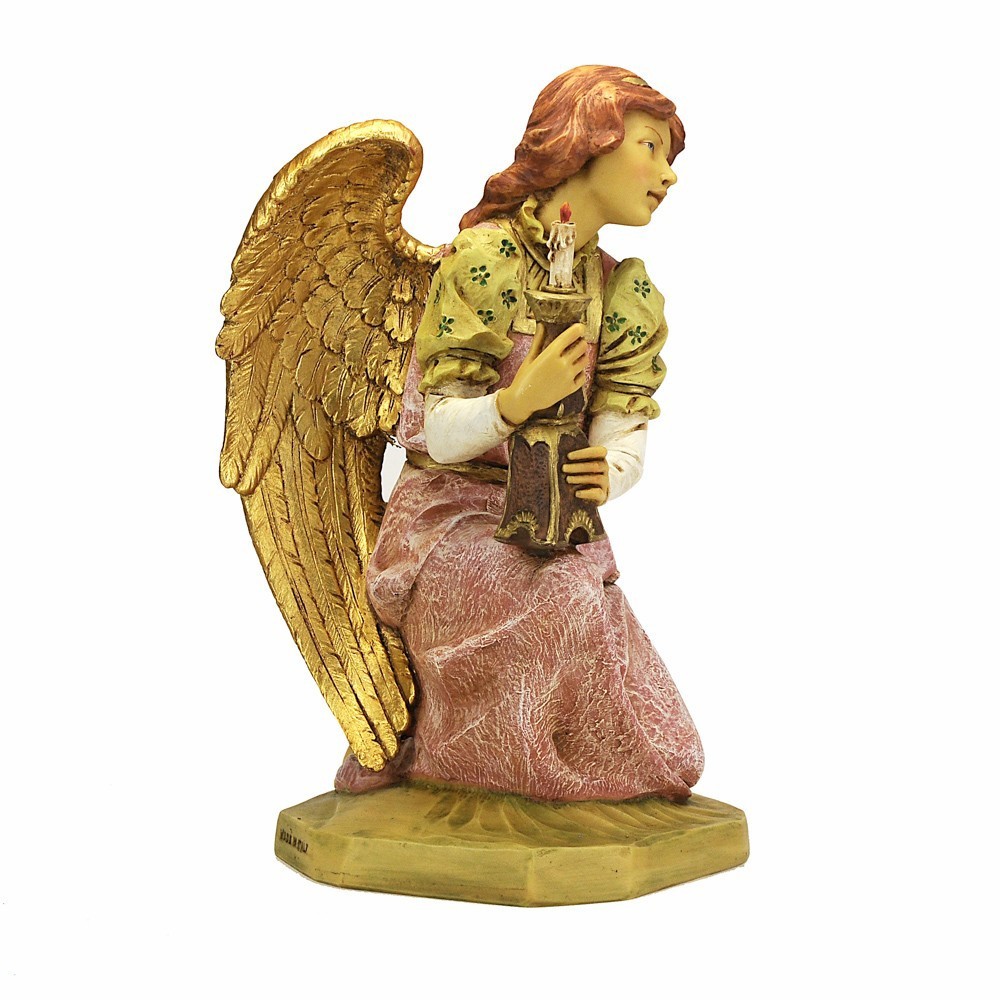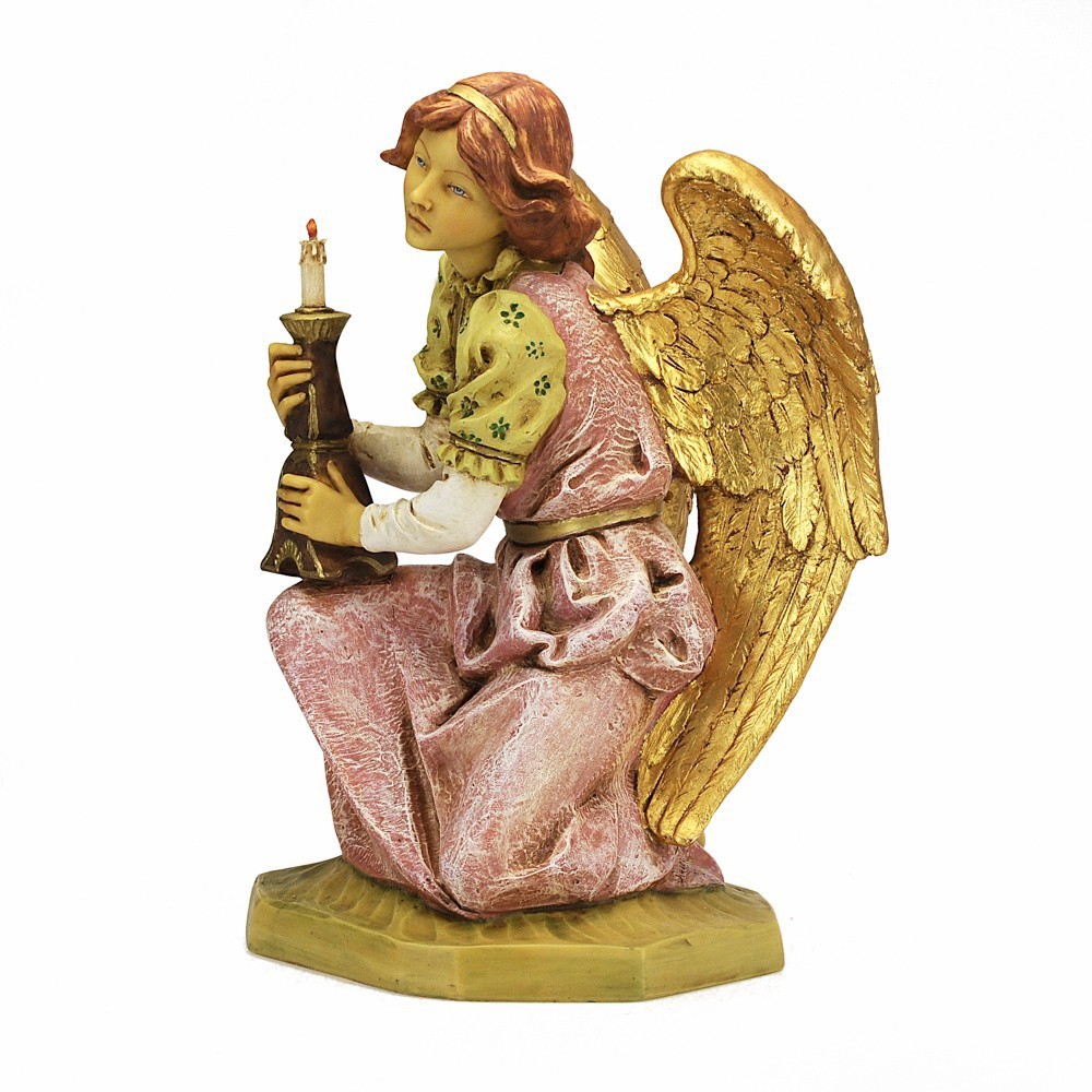 Angelo Fontanini, con veste rosa e candela in mano. Adatto per presepe Fontanini 52 cm.