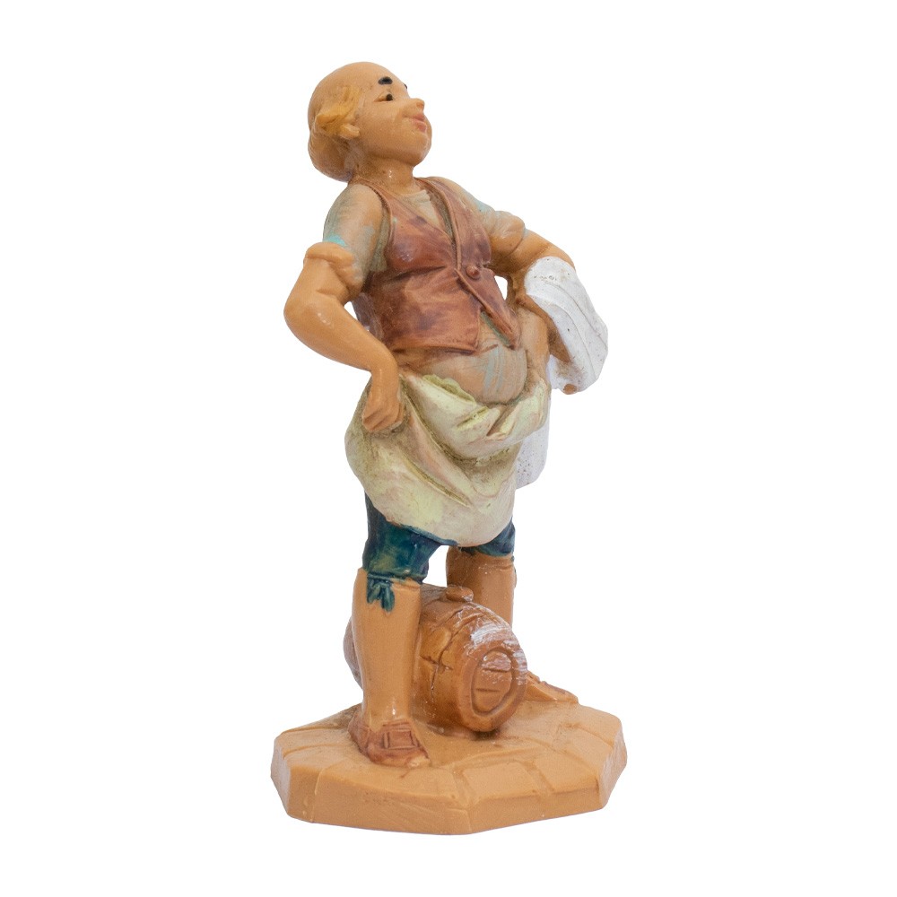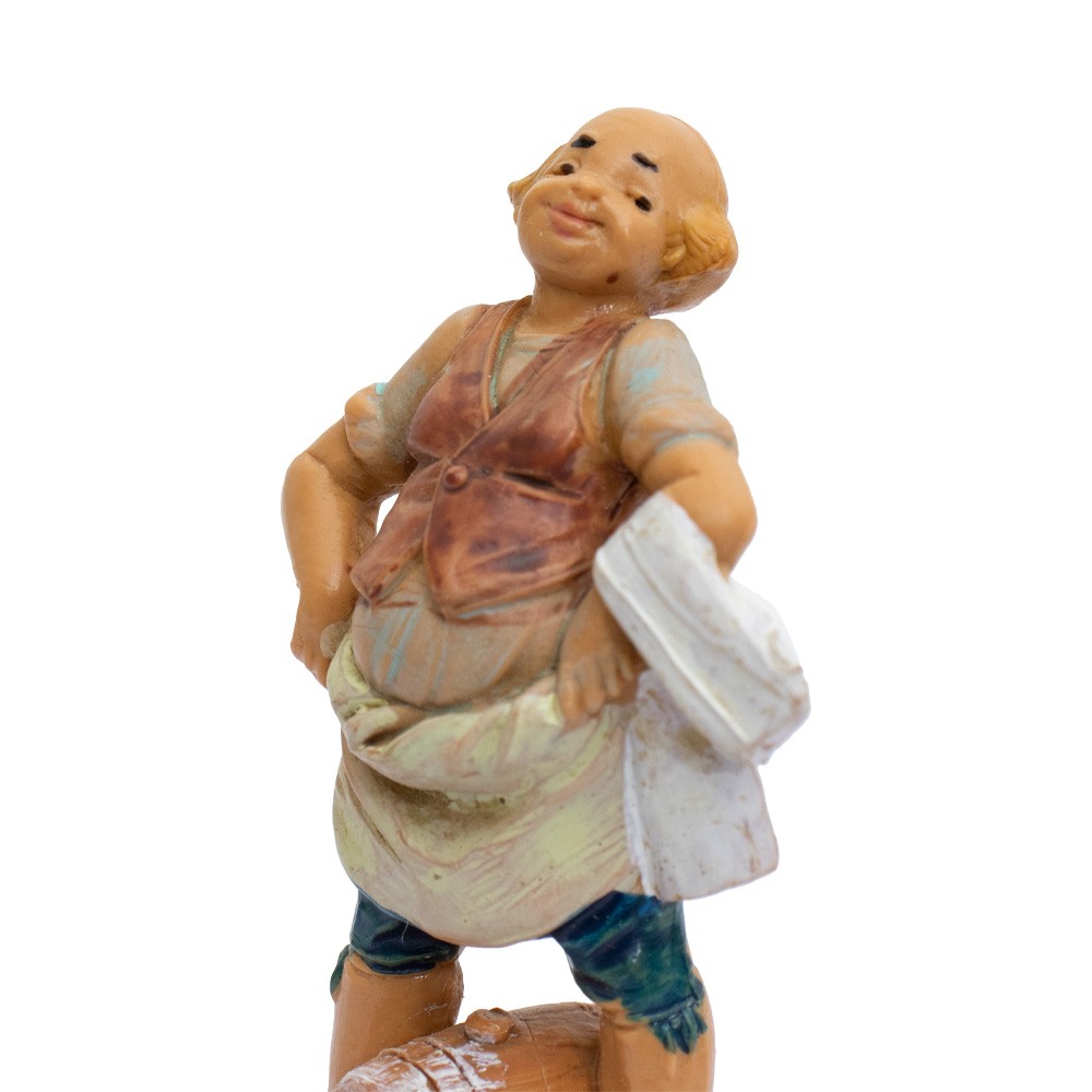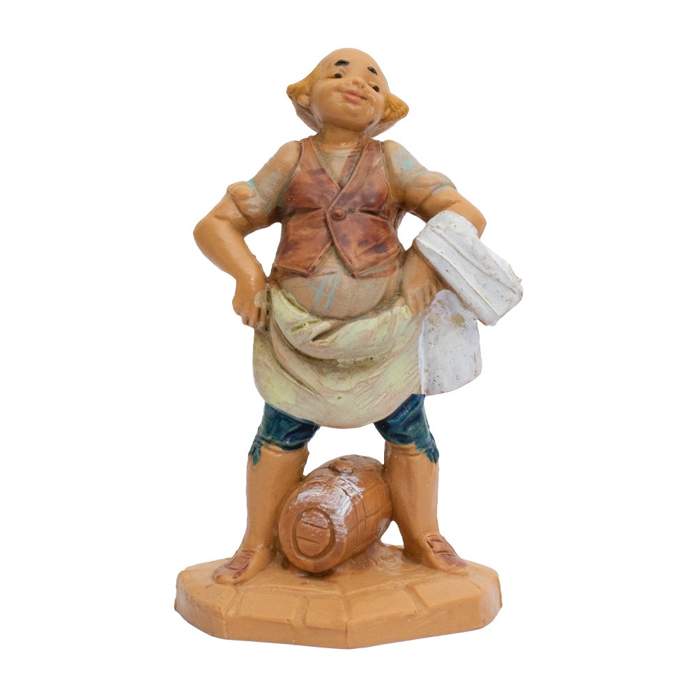 Oste con Botte per Presepe Fontanini da 6,5 cm. Realizzato in PVC, dipinto interamente a mano. Colorazione: Tipo legno. Made in Italy.