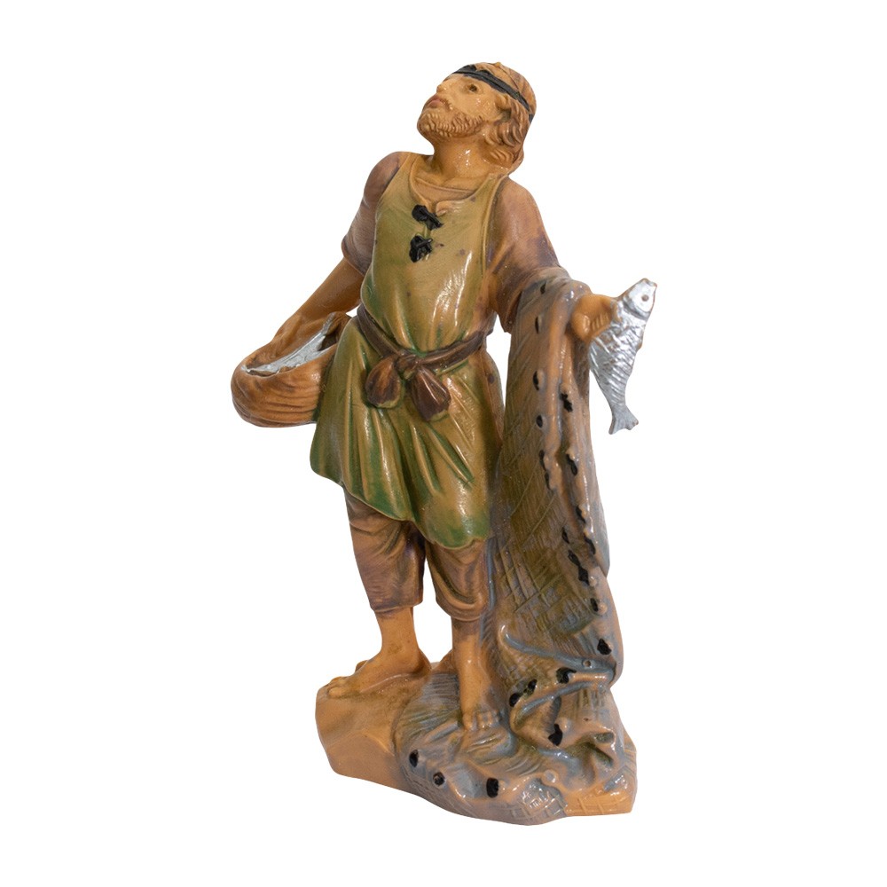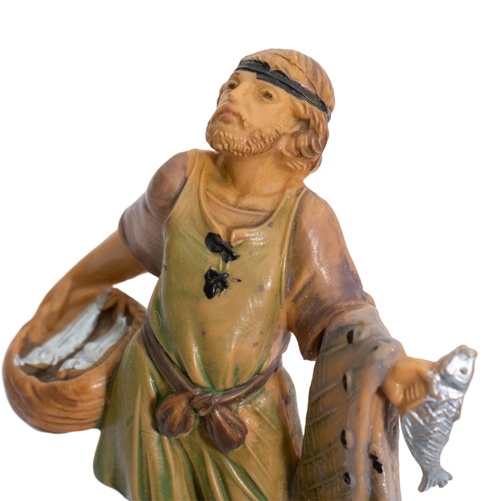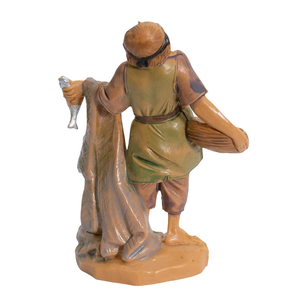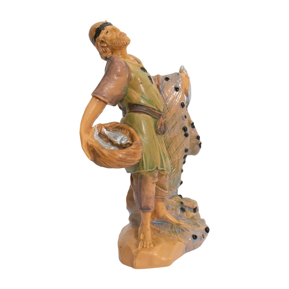 Pescatore con Rete e Pesci nel Cesto per Presepe Fontanini da 6,5 cm.
