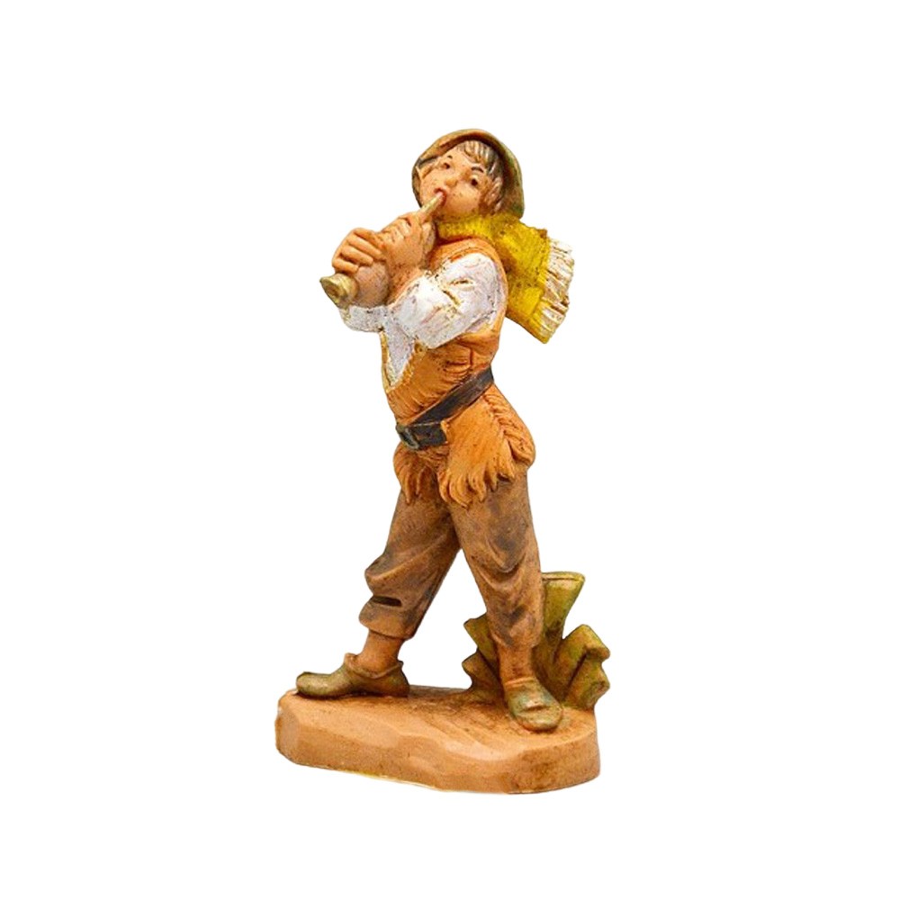 Musicista Pifferaio per il Presepe Fontanini da 6,5 cm. Realizzato in PVC, dipinto interamente a mano. Colorazione: Tipo legno. Made in Italy.