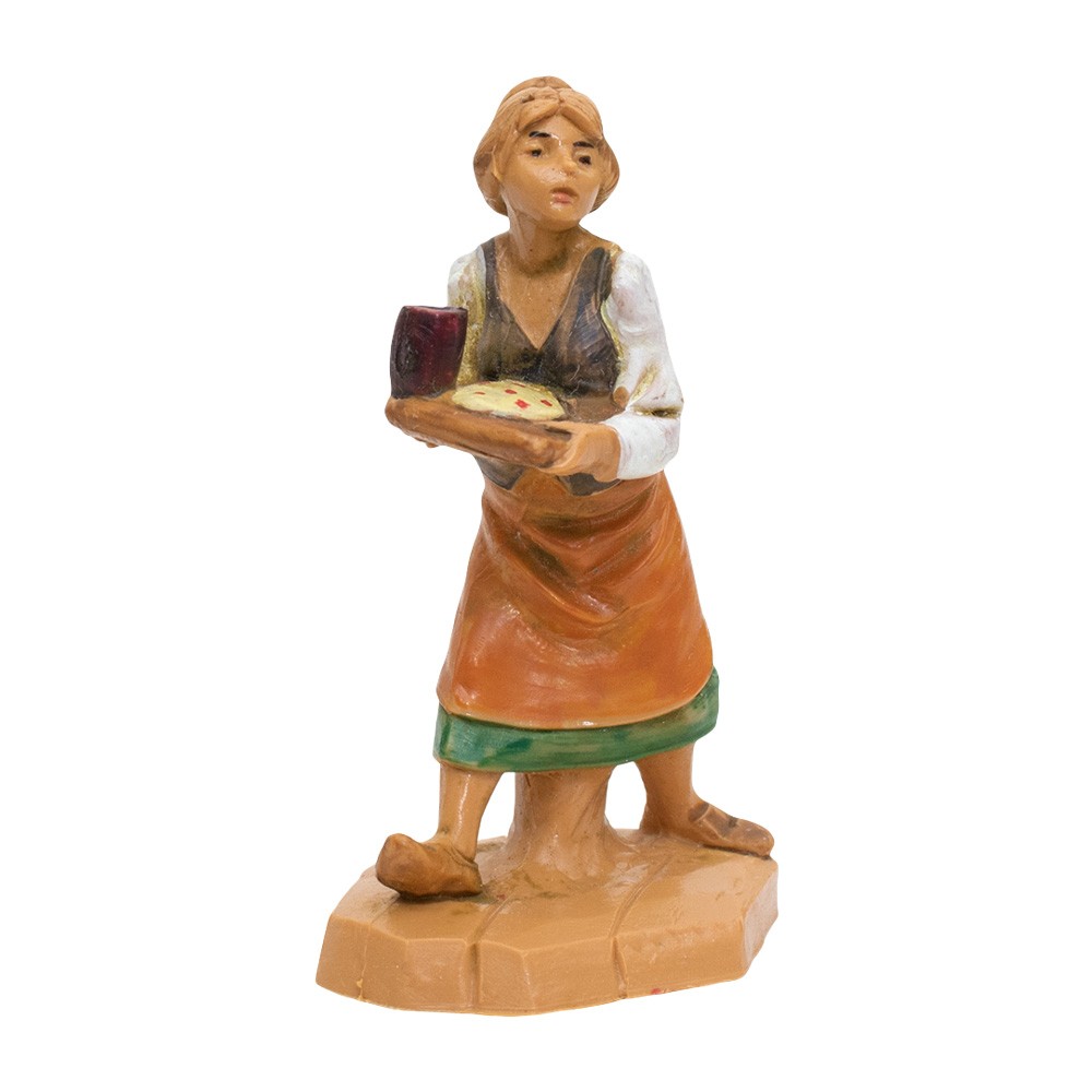 Pastorella con vassoio Pizza e Bicchiere per il Presepe Fontanini da 6,5.