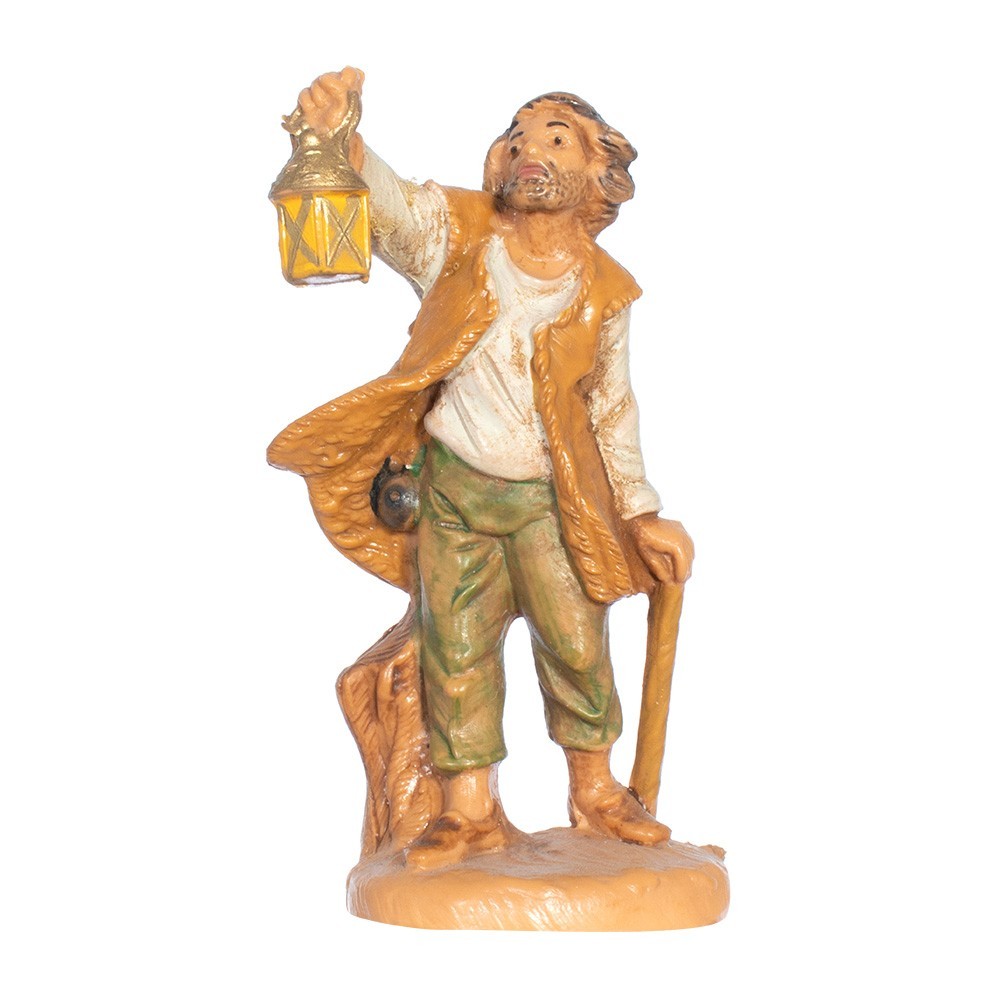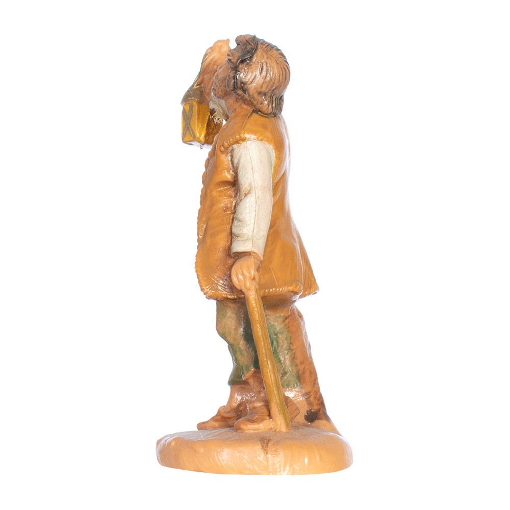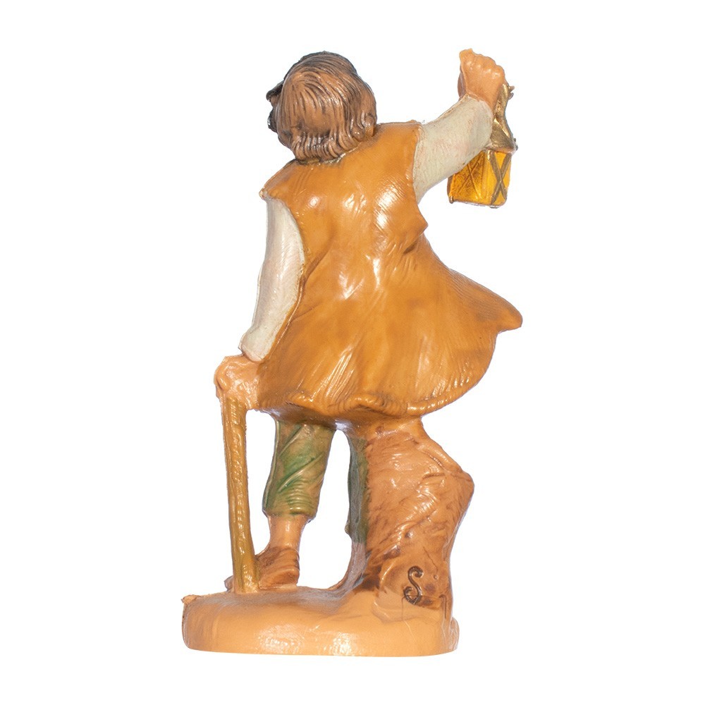 Statuina per presepe Fontanini: Pastore con Lanterna e bastone da 6,5 cm. Realizzata con colorazione tipo legno. Made in Italy.