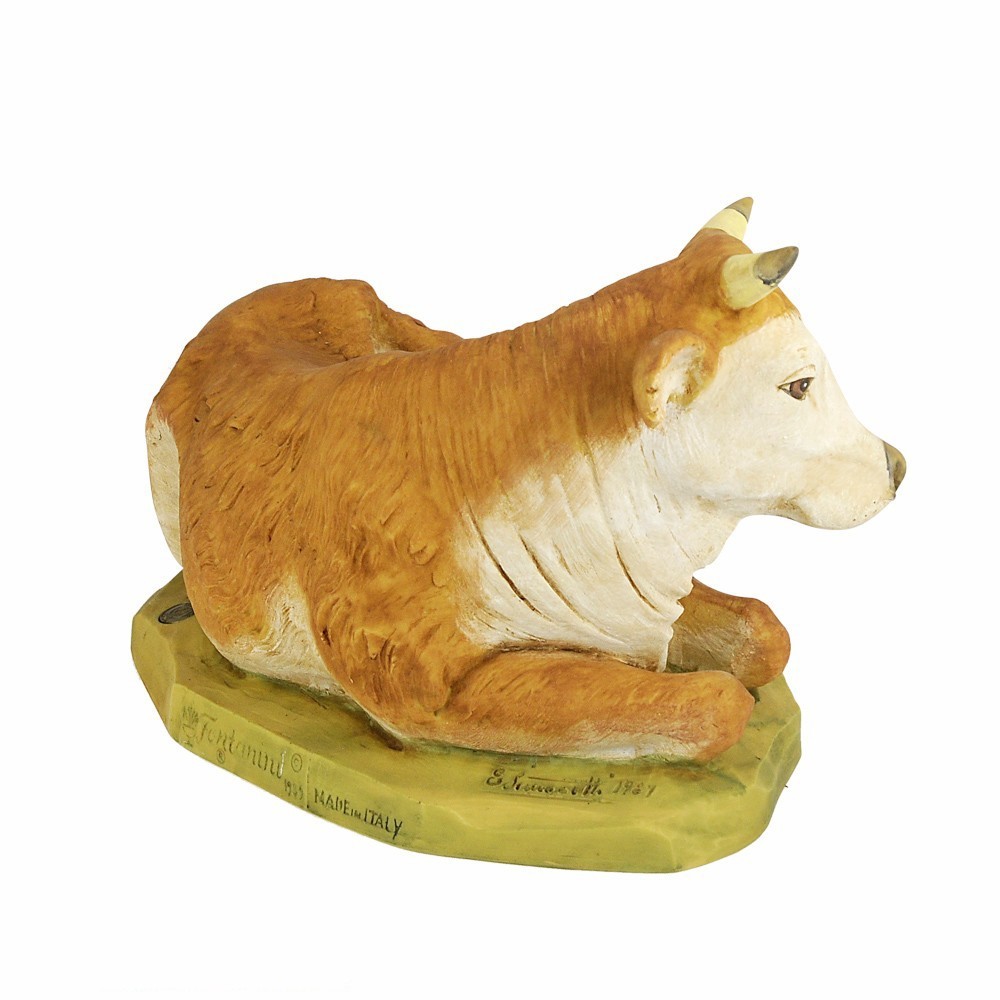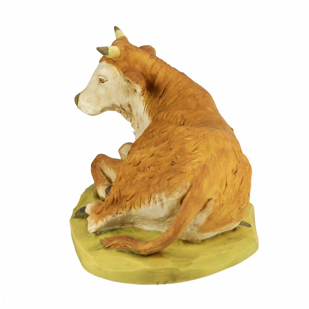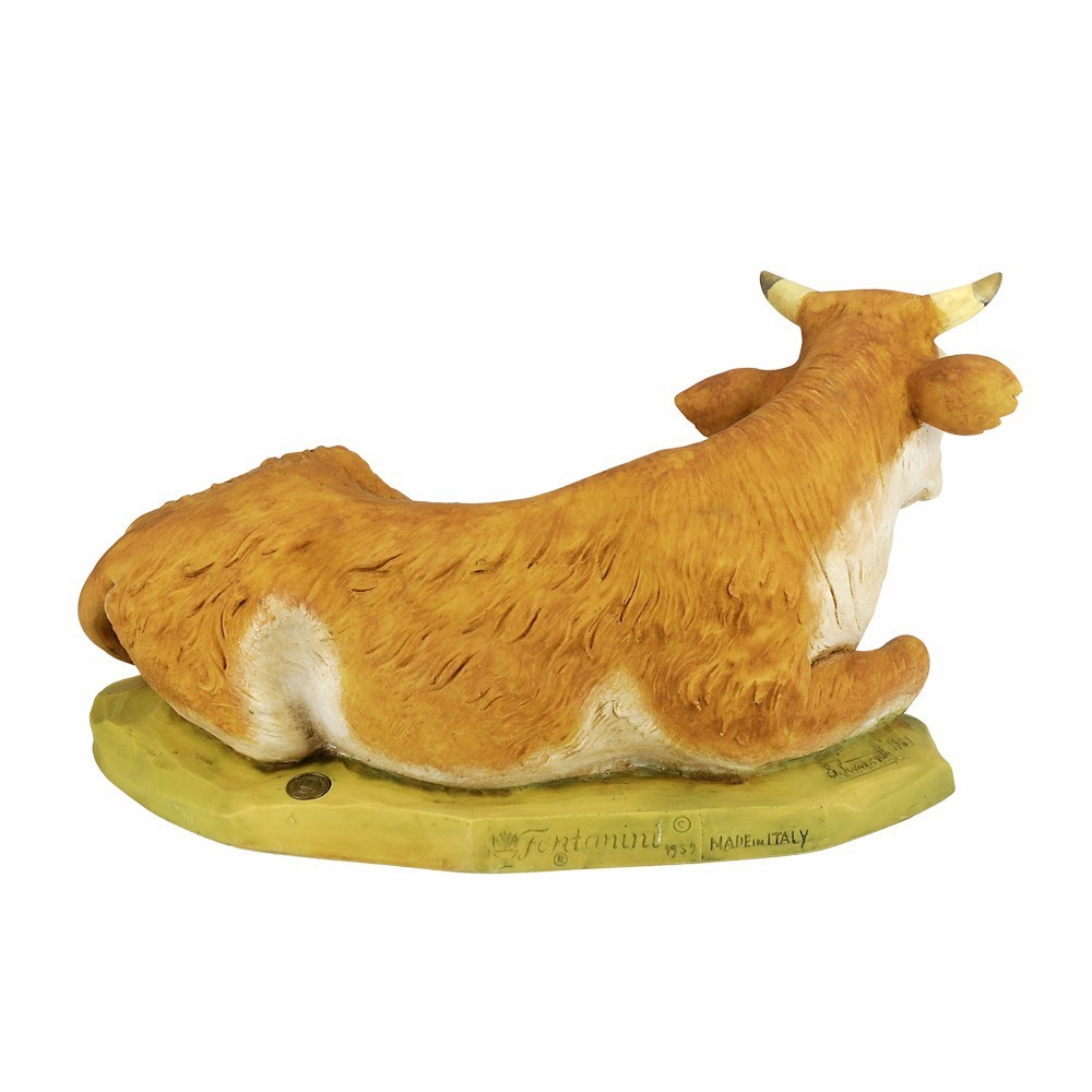 Bue Seduto di colore marrone per la Natività del Presepe Fontanini. Proporzionato x statue di 65 cm. Realizzato in Italia e dipinto interamente a mano, dall'azienda Fontanini.