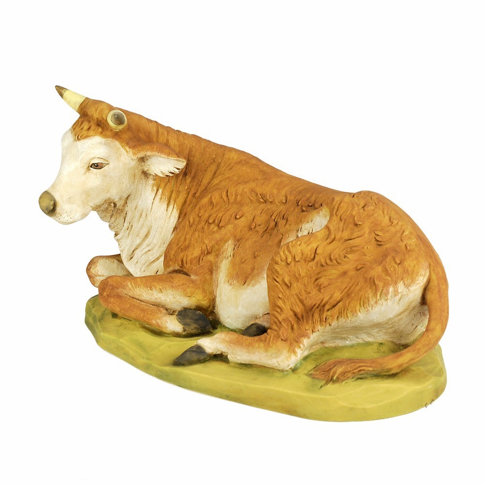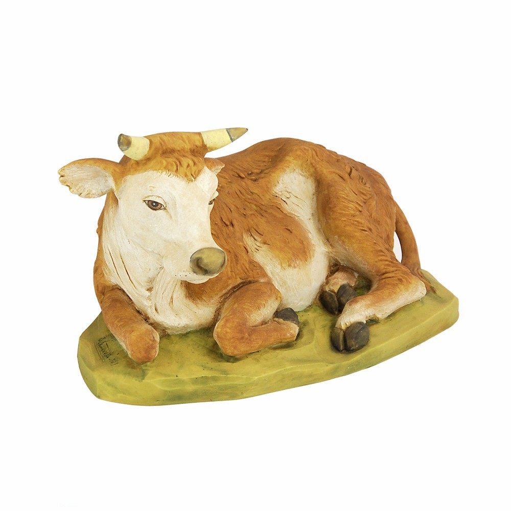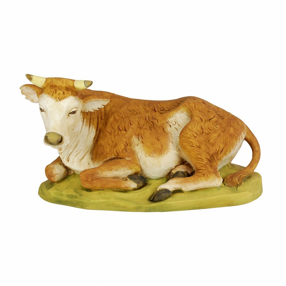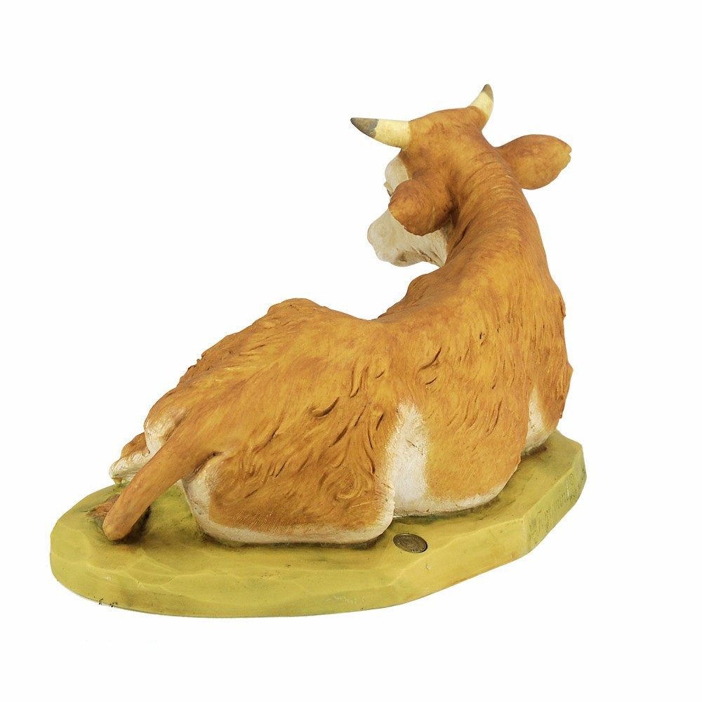 Bue Seduto di colore marrone per la Natività del Presepe Fontanini. Proporzionato x statue di 65 cm. Realizzato in Italia e dipinto interamente a mano, dall'azienda Fontanini.