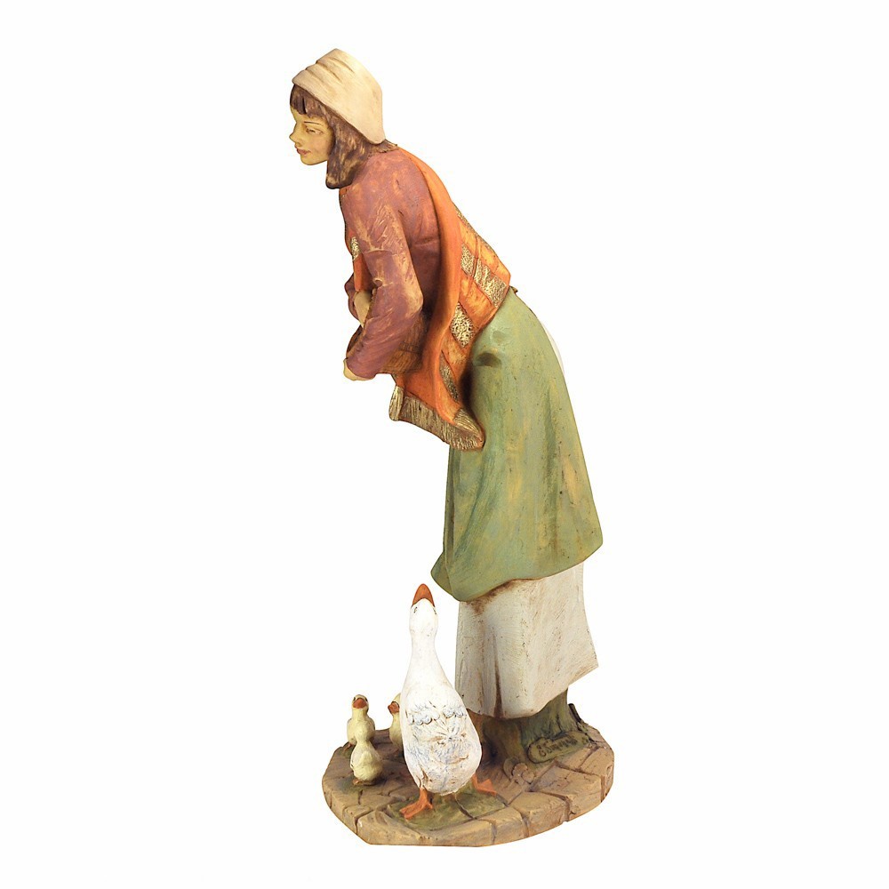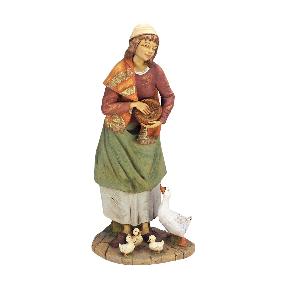 Statua pastorella con papere per presepe Fontanini. Realizzata in resina adatta per presepe da 85 cm. Questa azienda produce da anni presepi e statue religiose di alta qualità, curando tutti i dettagli. Dipinta finemente a mano. Made in Italy.